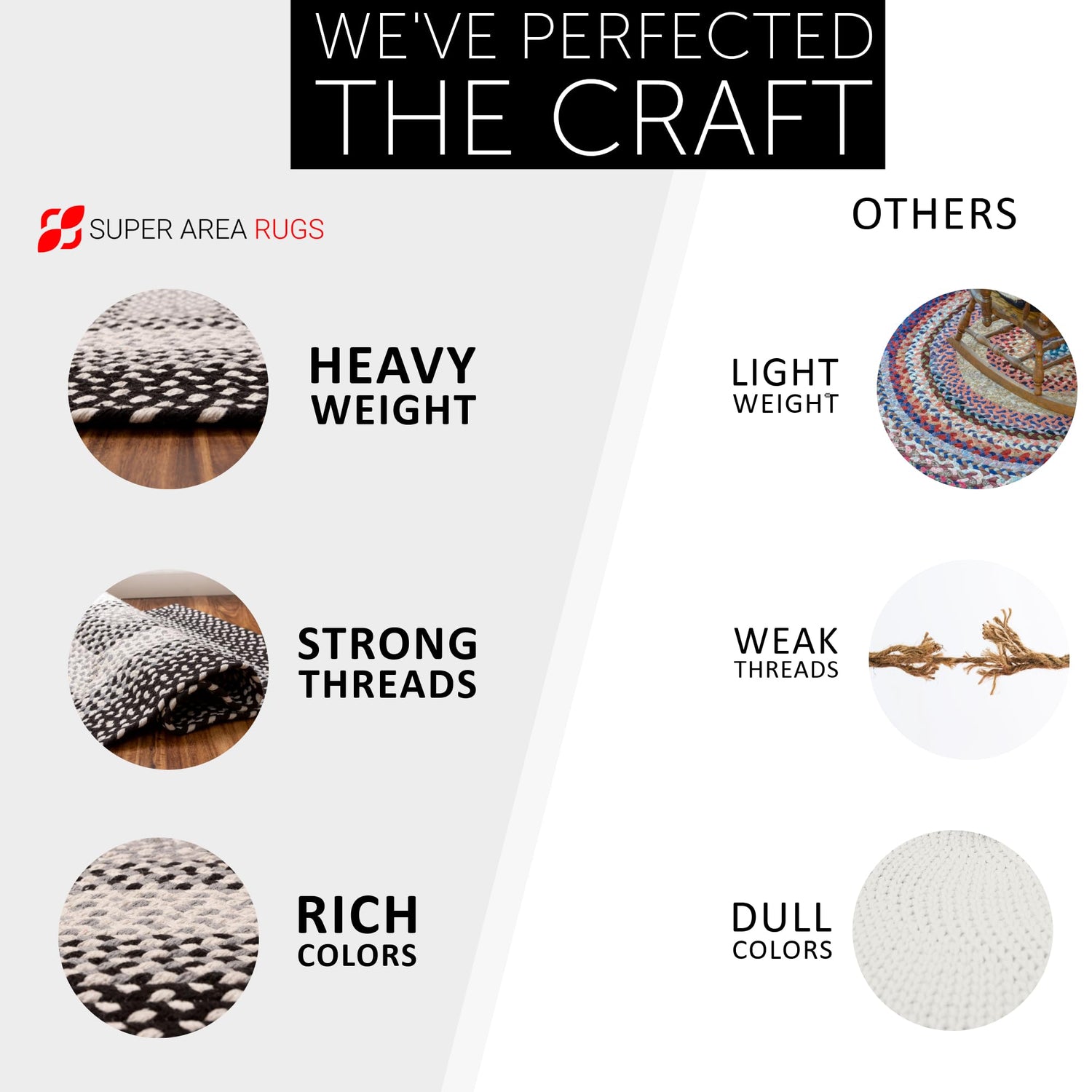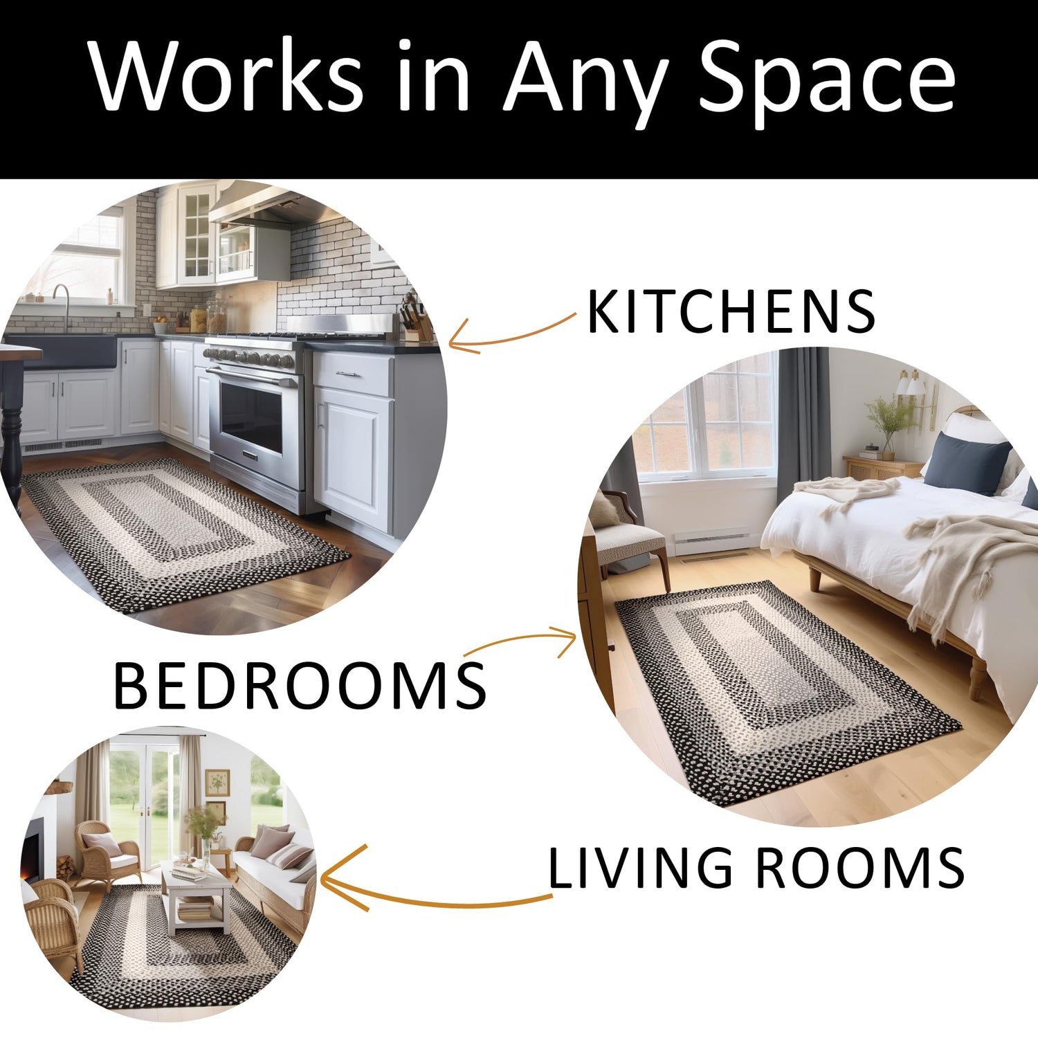 - DOUBLE THE STYLE & FARMHOUSE FLAIR: This beautiful reversible braided rug features a stunning black, white, and gray design on both sides, offering you two unique looks for the price of one! No need to commit to just one style - easily switch things up whenever the mood strikes, and embrace the timeless charm of a farmhouse rug.