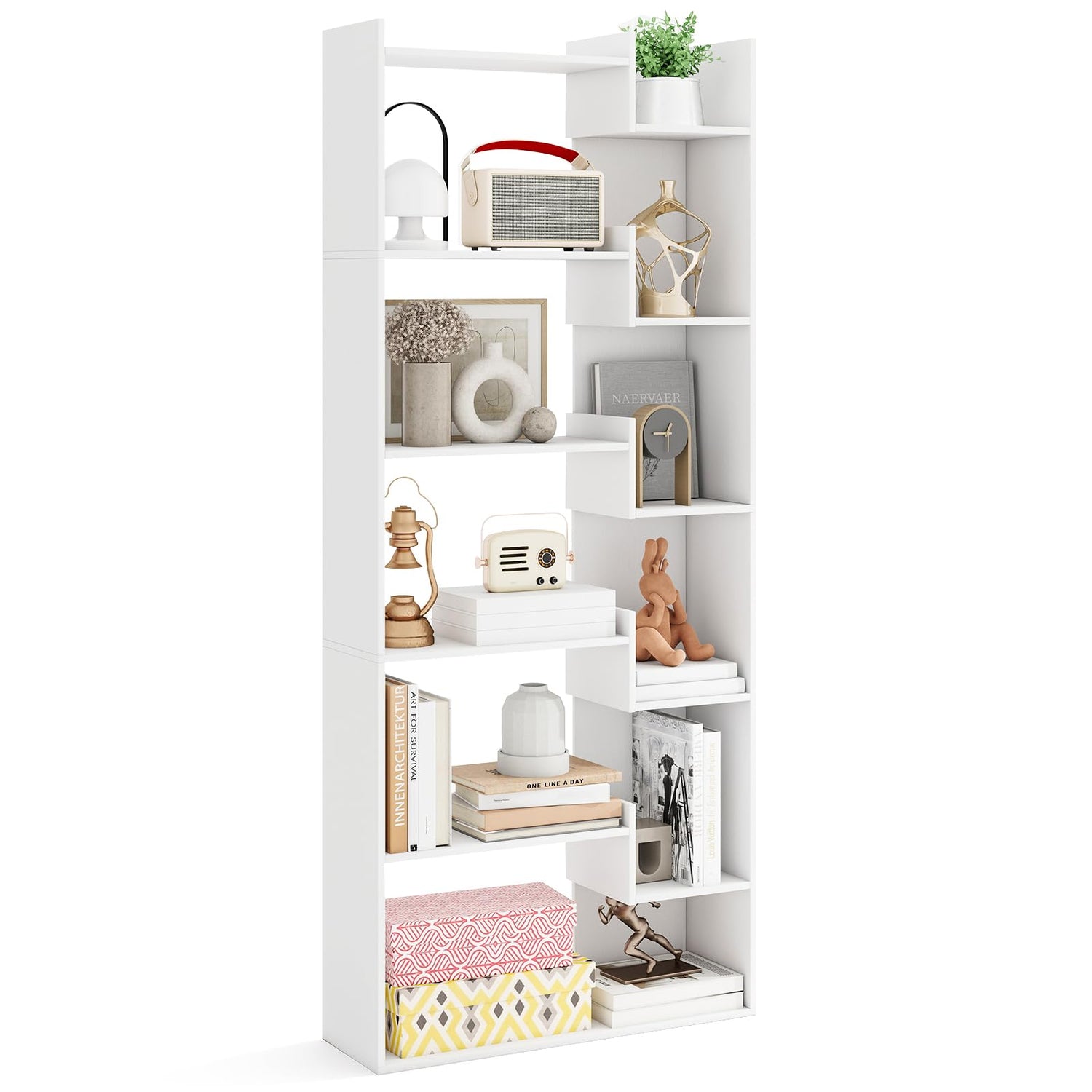Tangkula 6-Tier Bookshelf, 64”H Tall Open Bookcase with Anti-Tip Kits, Home Office Free-Standing Wood Room Divider Display Book Shelf, Modern 11-Shelf Storage Rack for Study, Living Room (1, White)