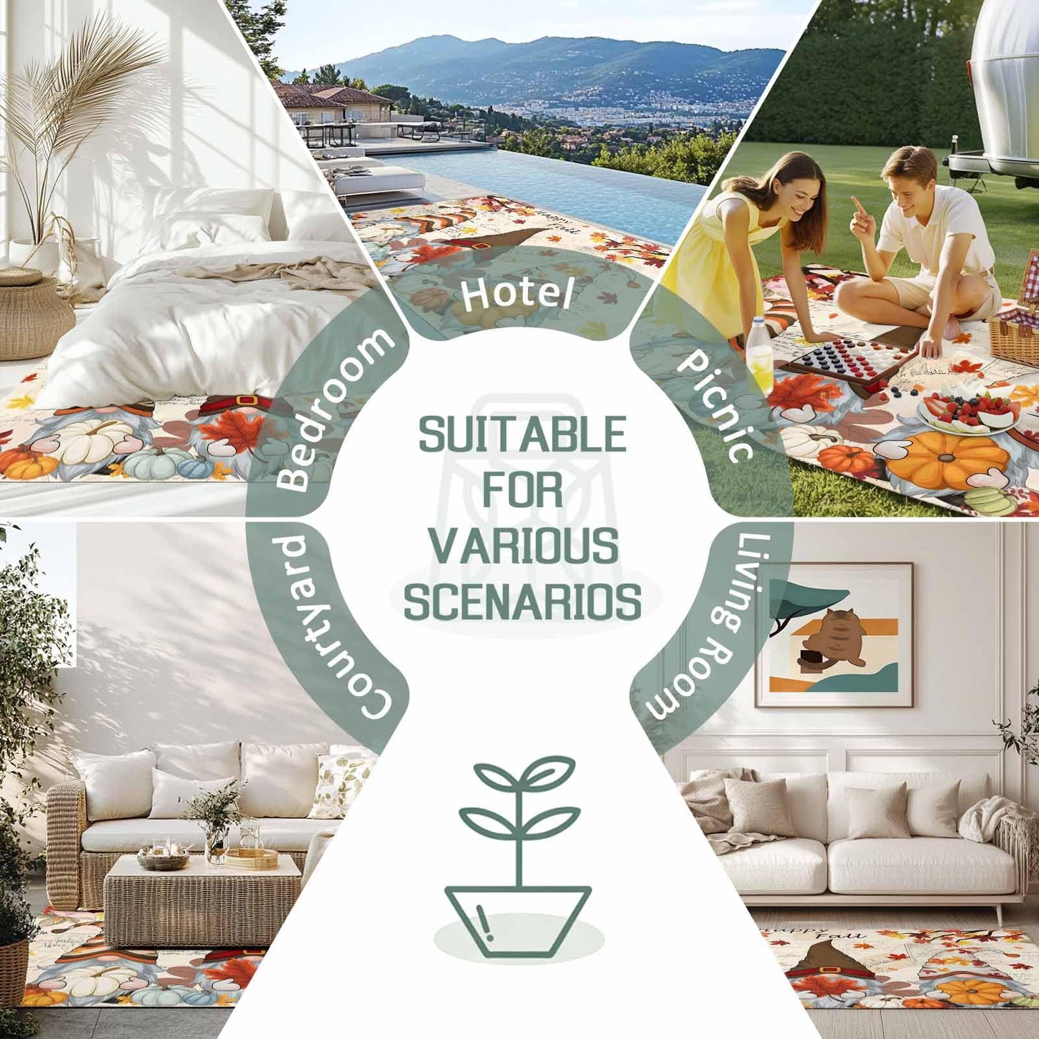 From gardens and porches to living rooms and dining areas, this versatile patio rug mat works in any setting. Use it as an outdoor rug for patio gatherings, a camping rug, picnic mat, or even an indoor carpet for added comfort.