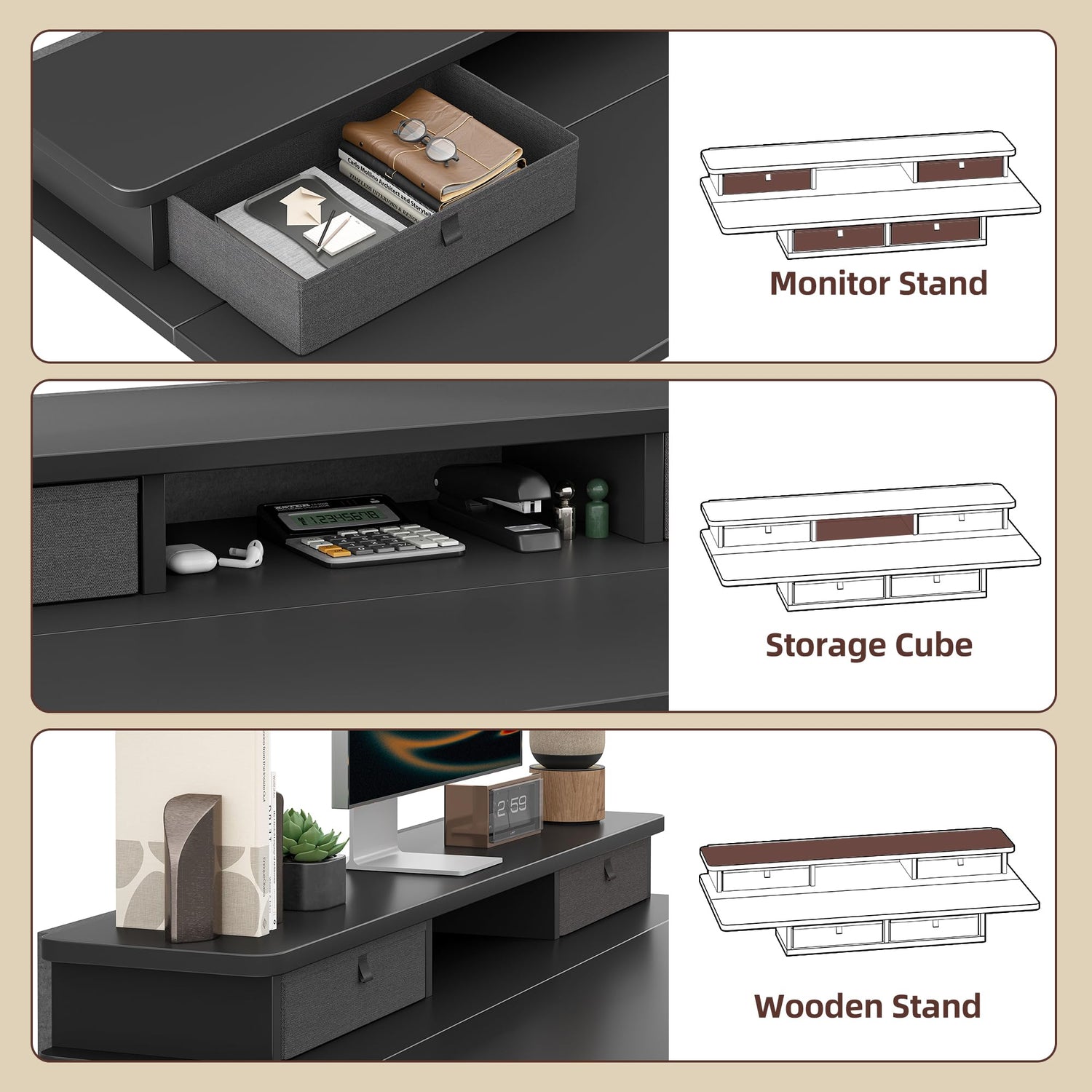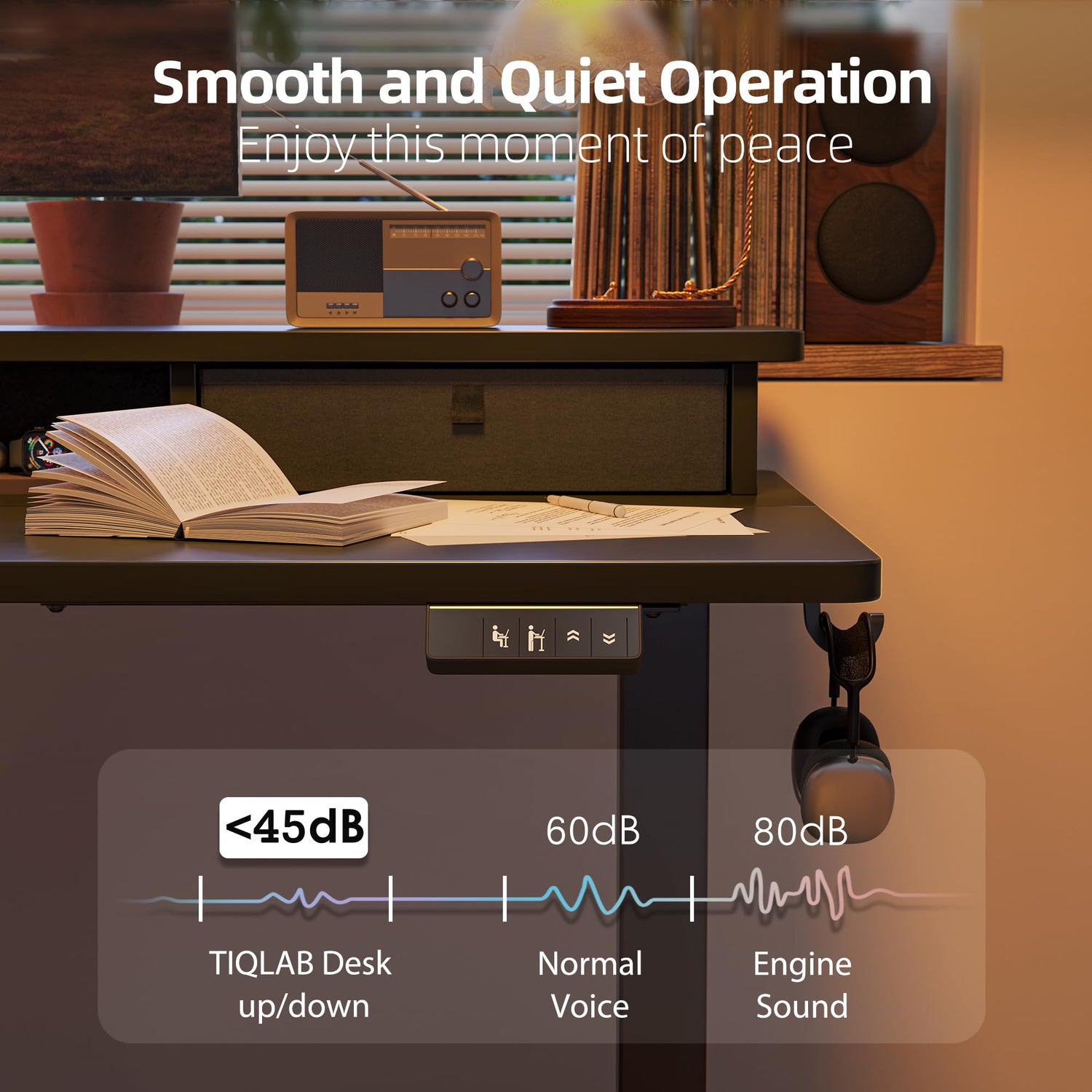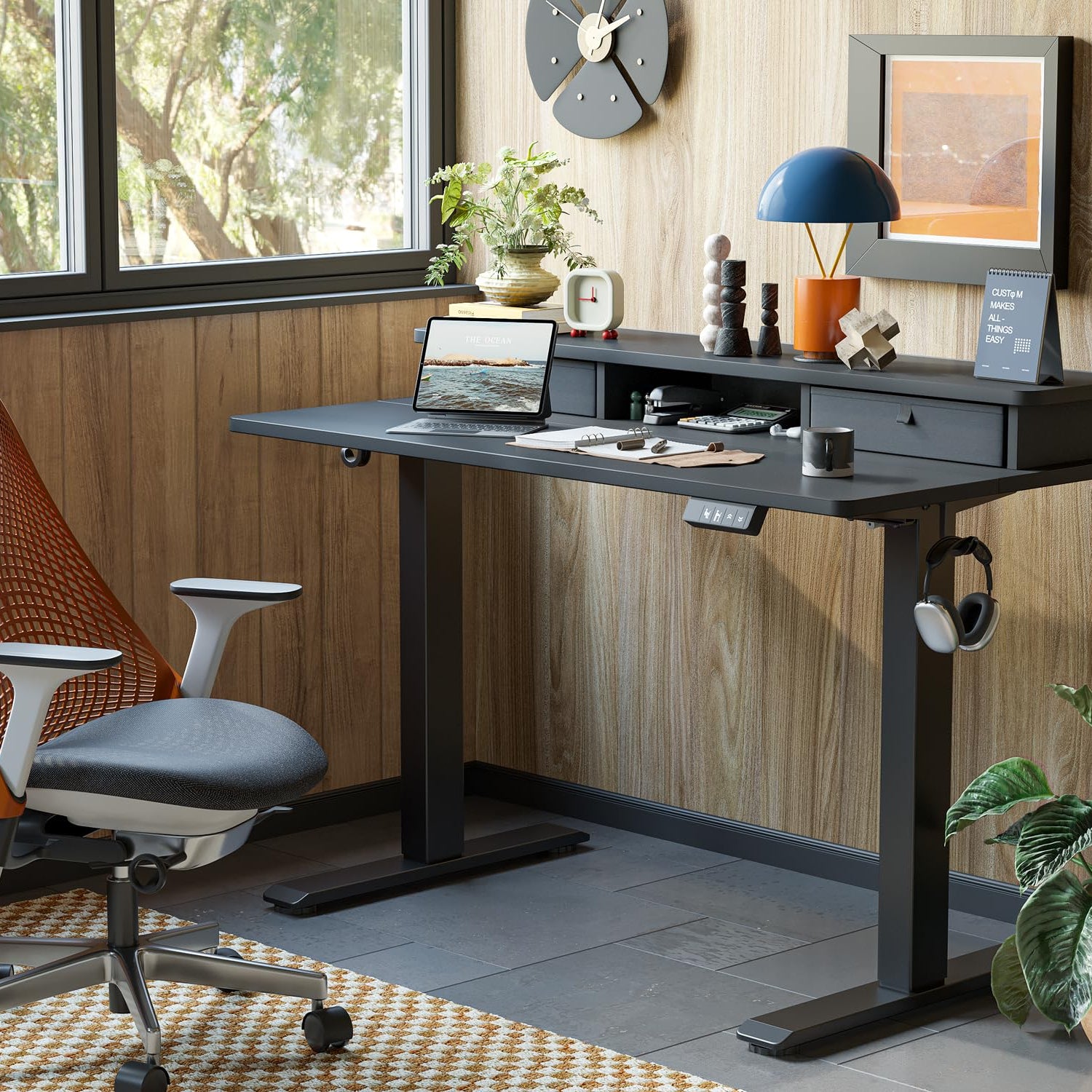 TIQLAB 48 * 24 Inch Standing Desk with Two Drawers, Stand Up Desk Adjustable Height, Electric Sit Stand Table with Storage Shelf and Splice Board, Black
