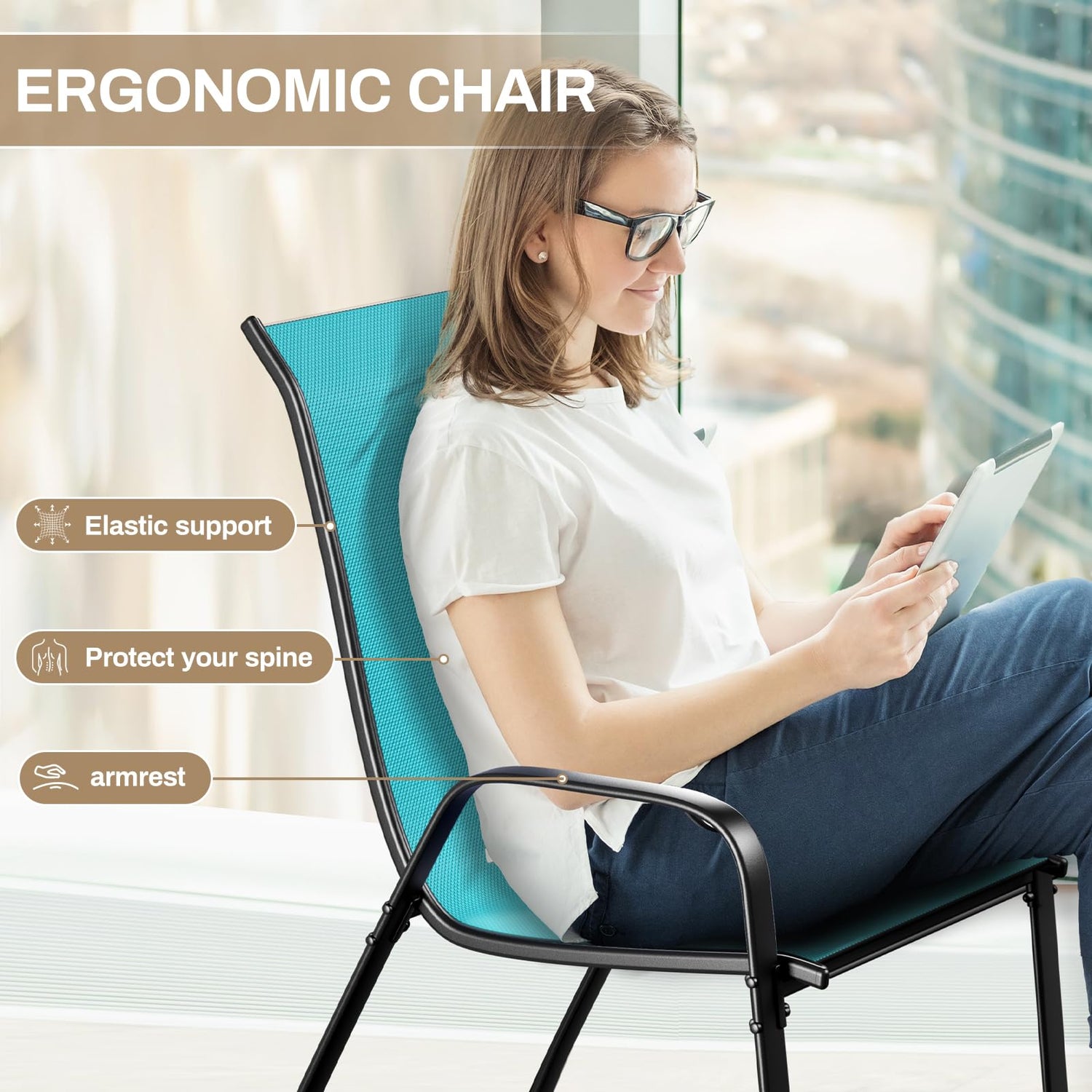 - ERGONOMIC DESIGN: Textilene chairs in outdoor furniture set are ergonomically designed. The backrest angle of more than 90°, improving comfort of your back and waist. The cushion with elastic support technology is soft, allowing you to sit for a long time without getting tired