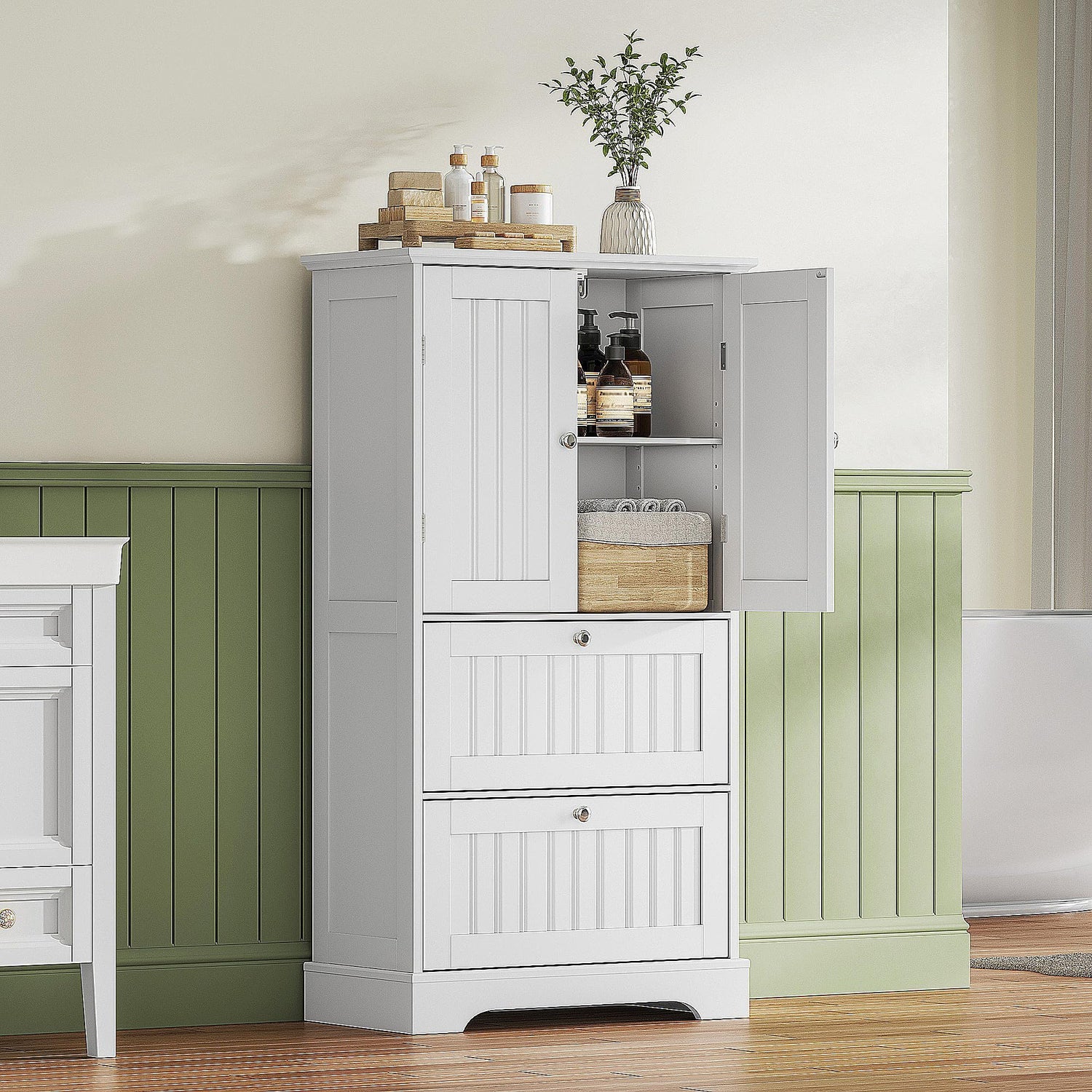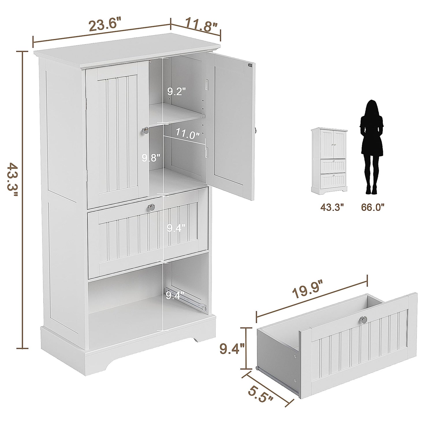 Treocho Bathroom Floor Cabinet, White Bathroom Storage Cabinet with Drawers and Adjustable Shelf, Freestanding Kitchen Pantry Cupboard with 2 Doors for Living Room
