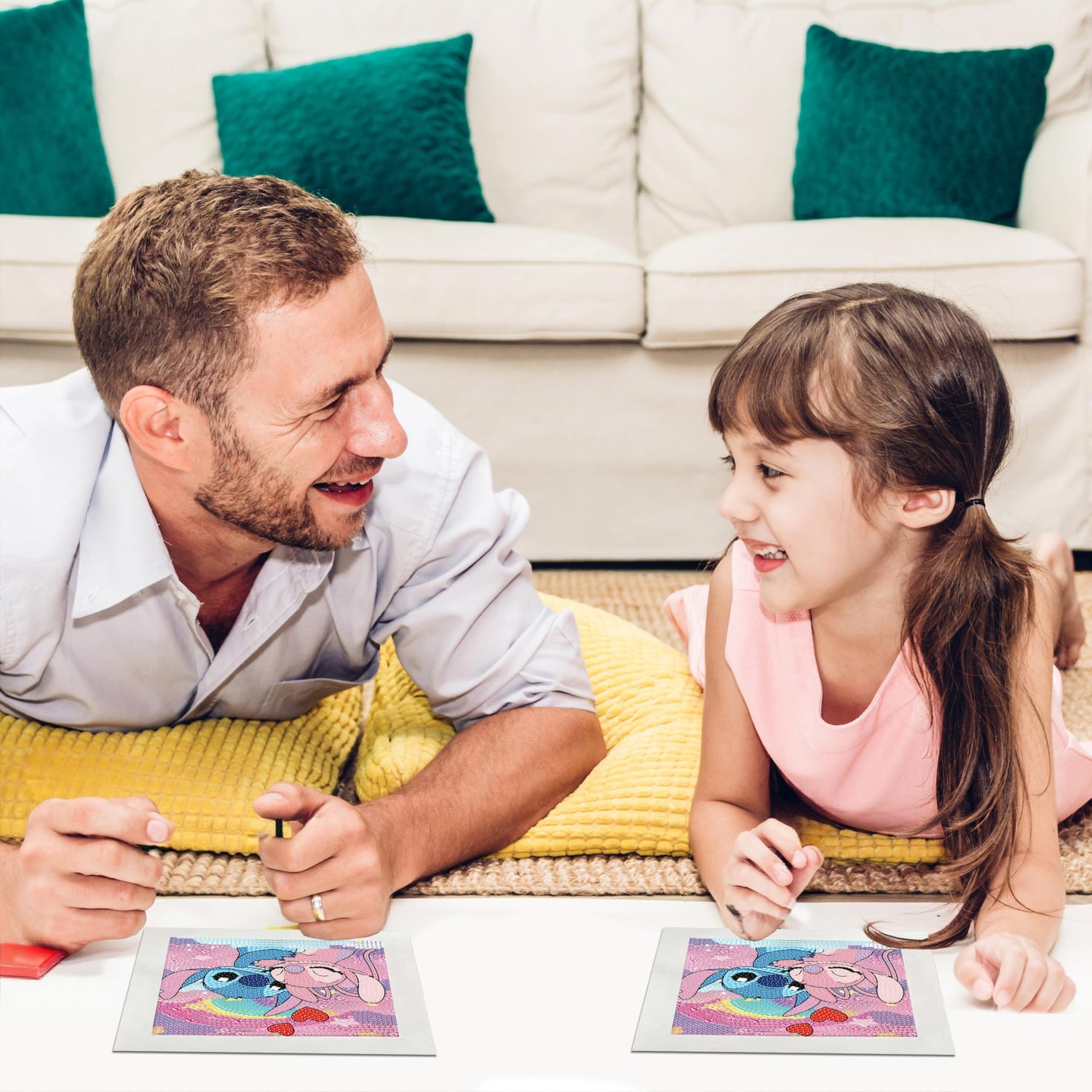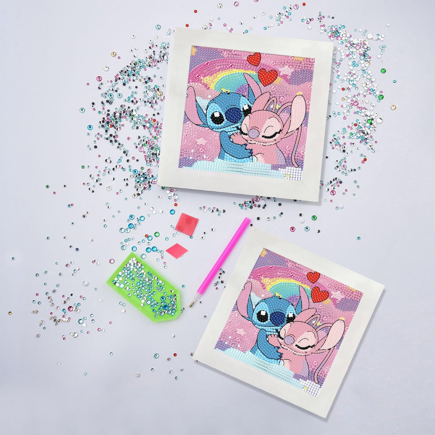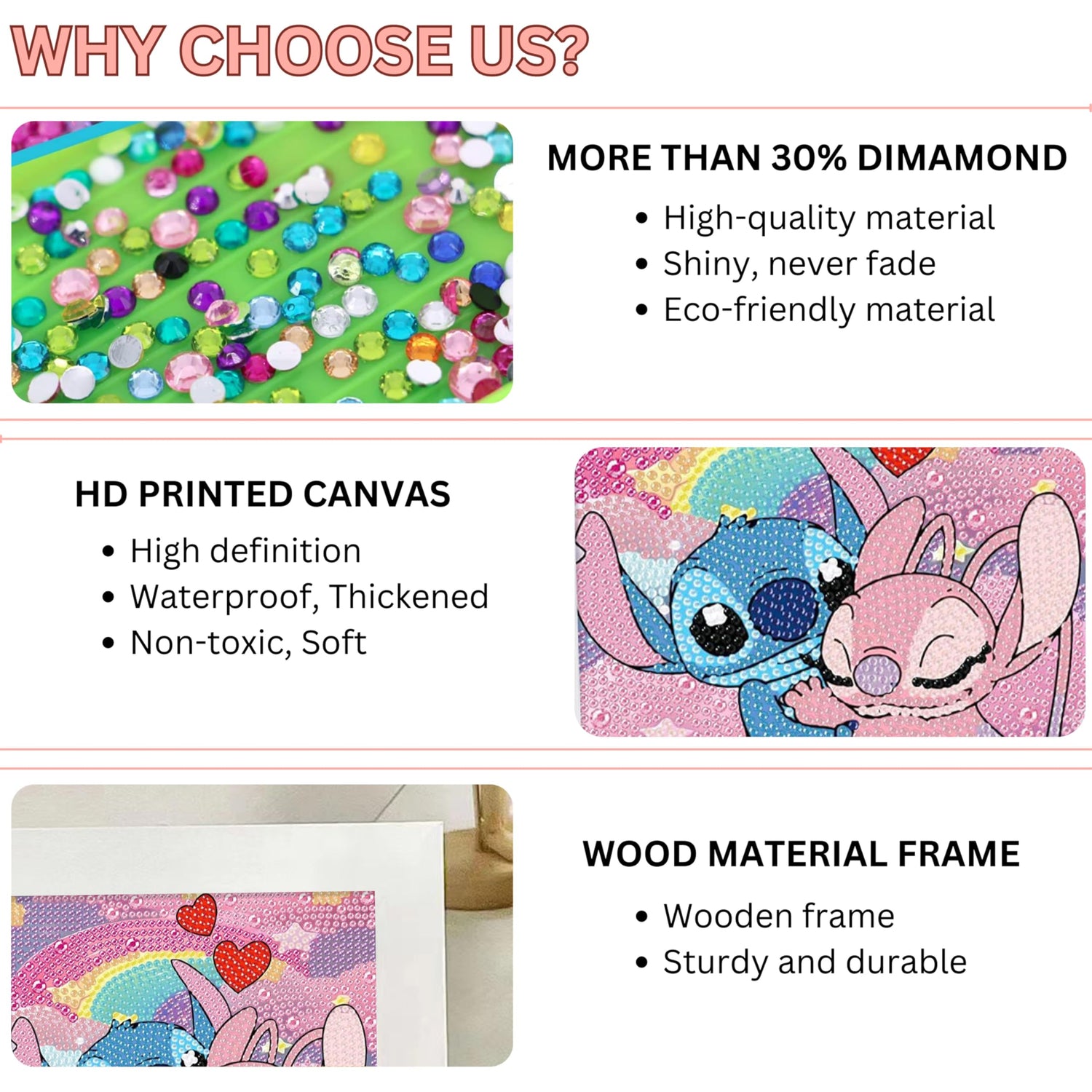 USACRAFT Cute Diamond Painting Kits Large 7x7 Natural Wooden Frame, Pre-Mounted Canvas, Sparkling Crystal Gems, Pen, Arts & Crafts Tray, Gum. Famous Characters, Adorable Animals (ST.Love)