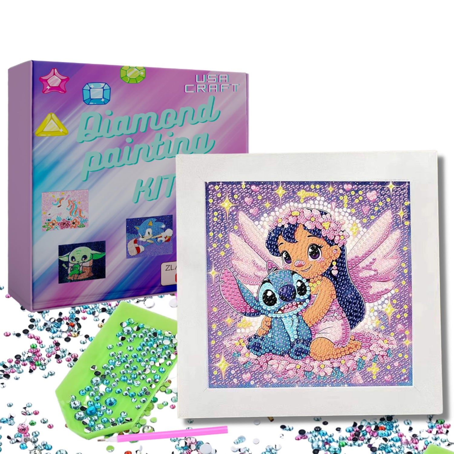 USACRAFT Cute Diamond Painting Kits, Mosaic Kit, Large 7x7 Natural Wooden Frame, Pre-Mounted Canvas, Sparkling Crystal Gems, Pen, Arts & Crafts Tray, Gum. Famous Characters, St.Girl