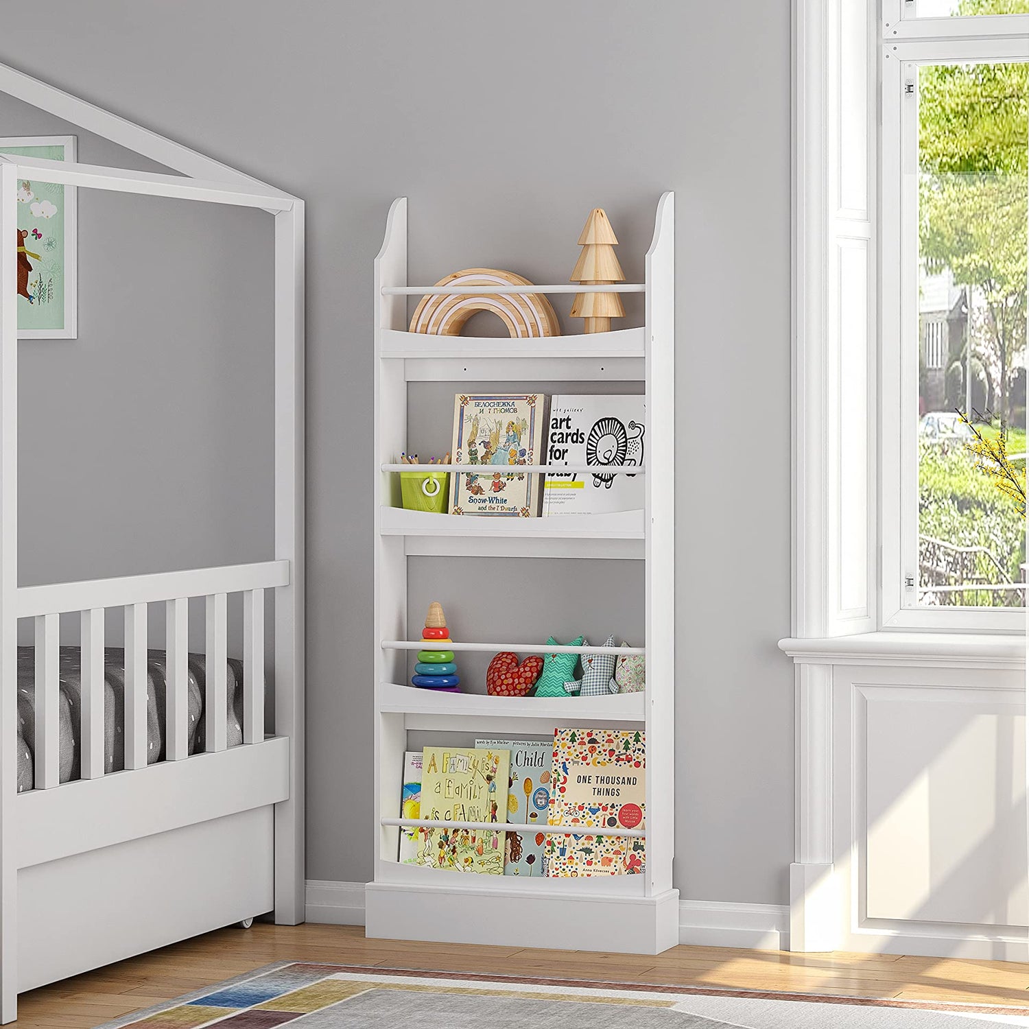 - Functional bookcase organizer: This nursery book shelves will help you create a comfortable and entertaining reading corner that encourages early reading and makes your child's room tidier. Perfect for any nursery or children's room