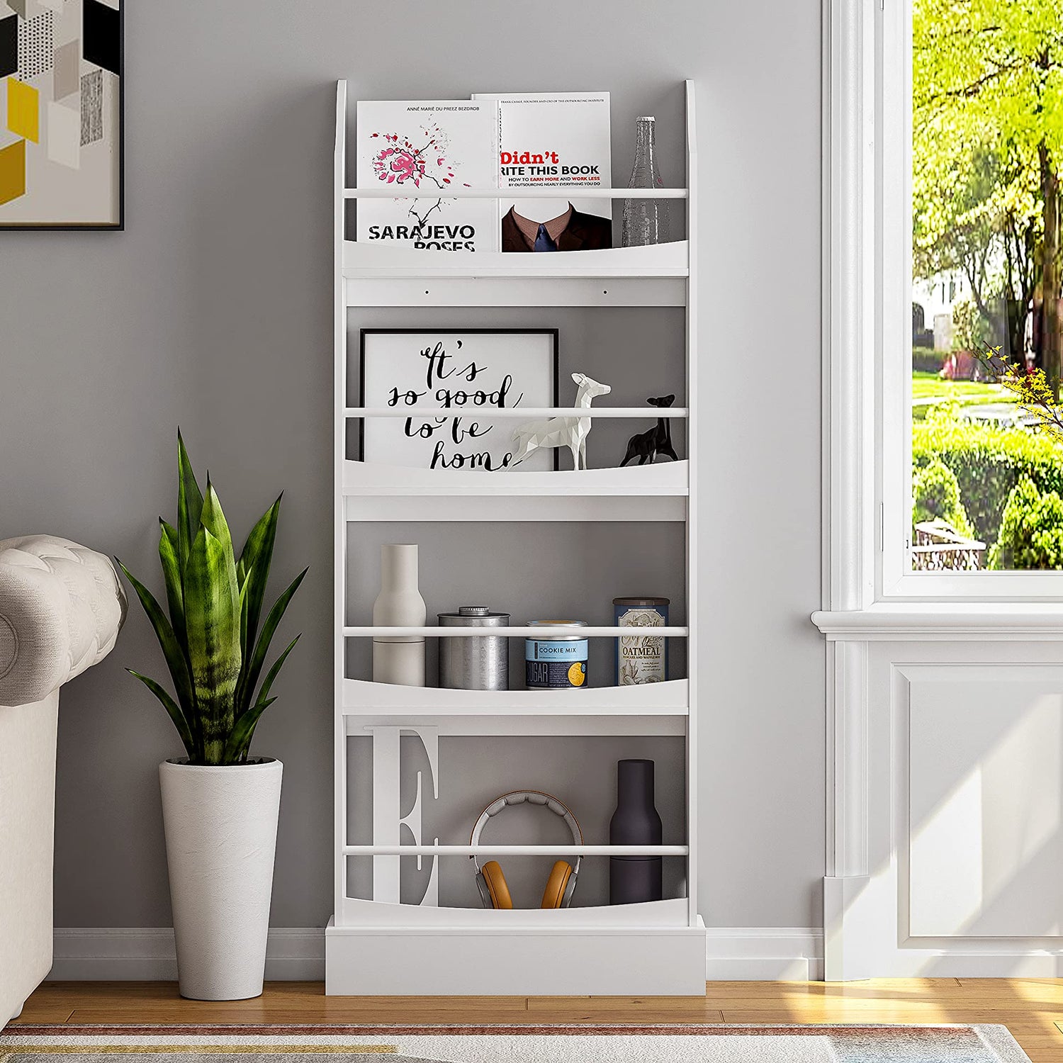 - More space for activities: Using the free wall space not only enhances the wall decoration, but also the 4-tiers kids bookshelf wall mounted can easily display books, newspapers, magazines and even small toys, saving more space
