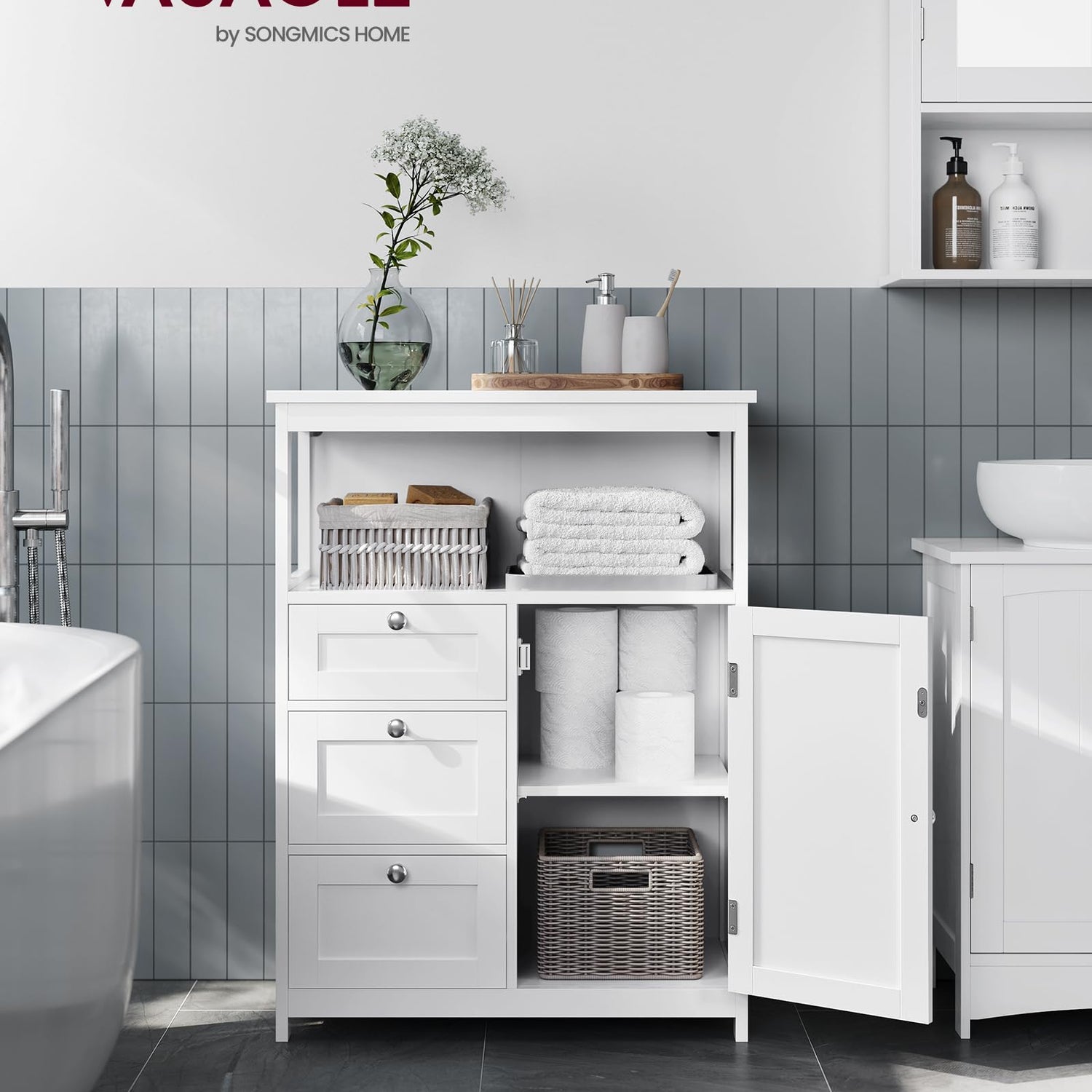 VASAGLE Floor Storage Cabinet, Freestanding Storage Unit with 3 Drawers, Adjustable Shelf, 11.8 x 23.6 x 31.5 Inches, for Living Room, Bathroom, Entryway, White UBBC542P31V1