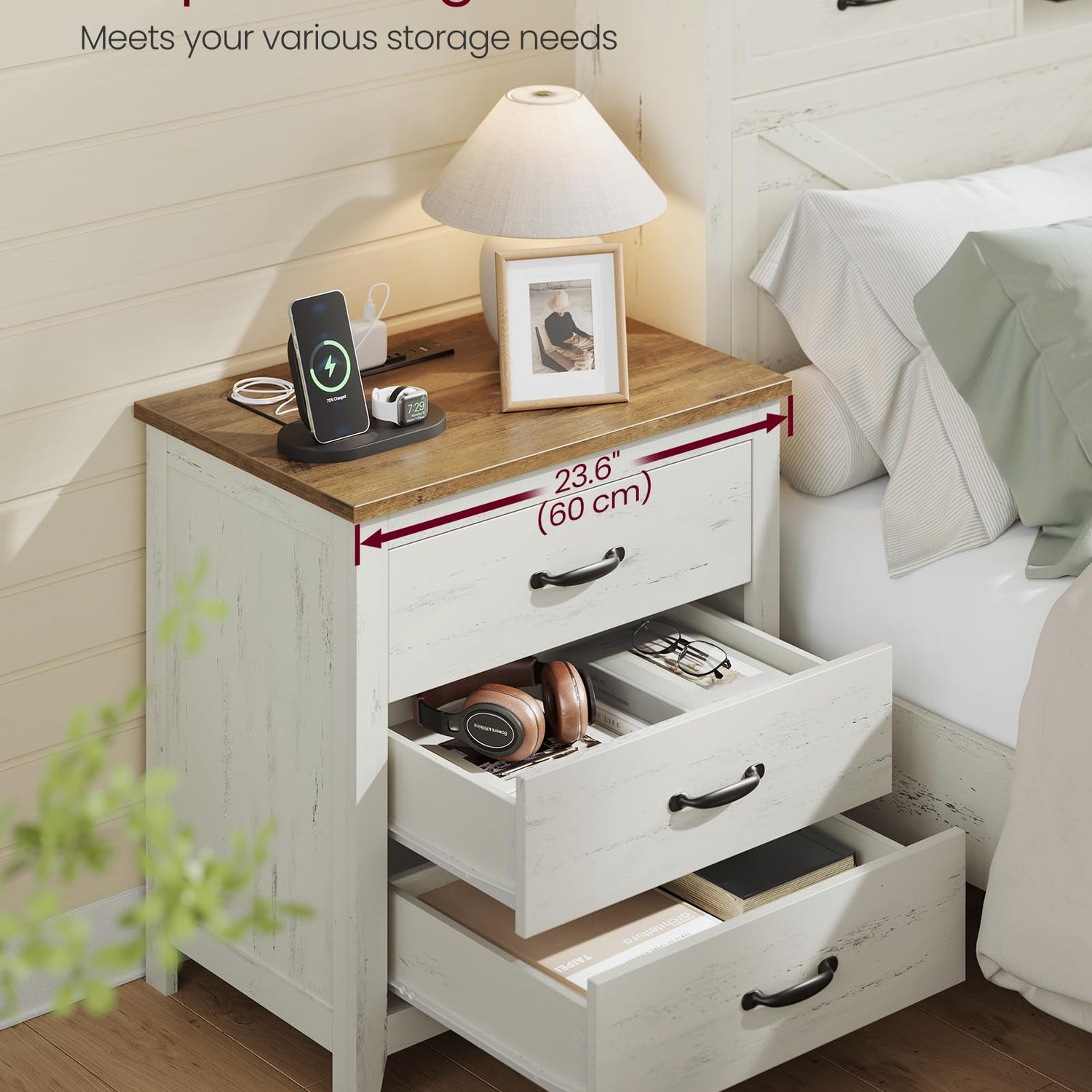 - Larger Size, Larger Storage: Measuring 15.7"D x 23.6"W x 24.8"H, this bedside table offers 3 large drawers, perfect for organizing nightime or daily essentials in your bedroom or living room