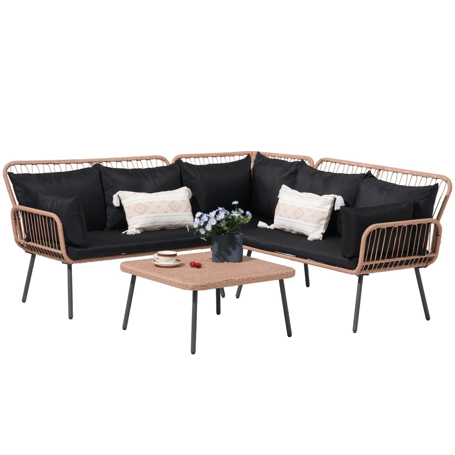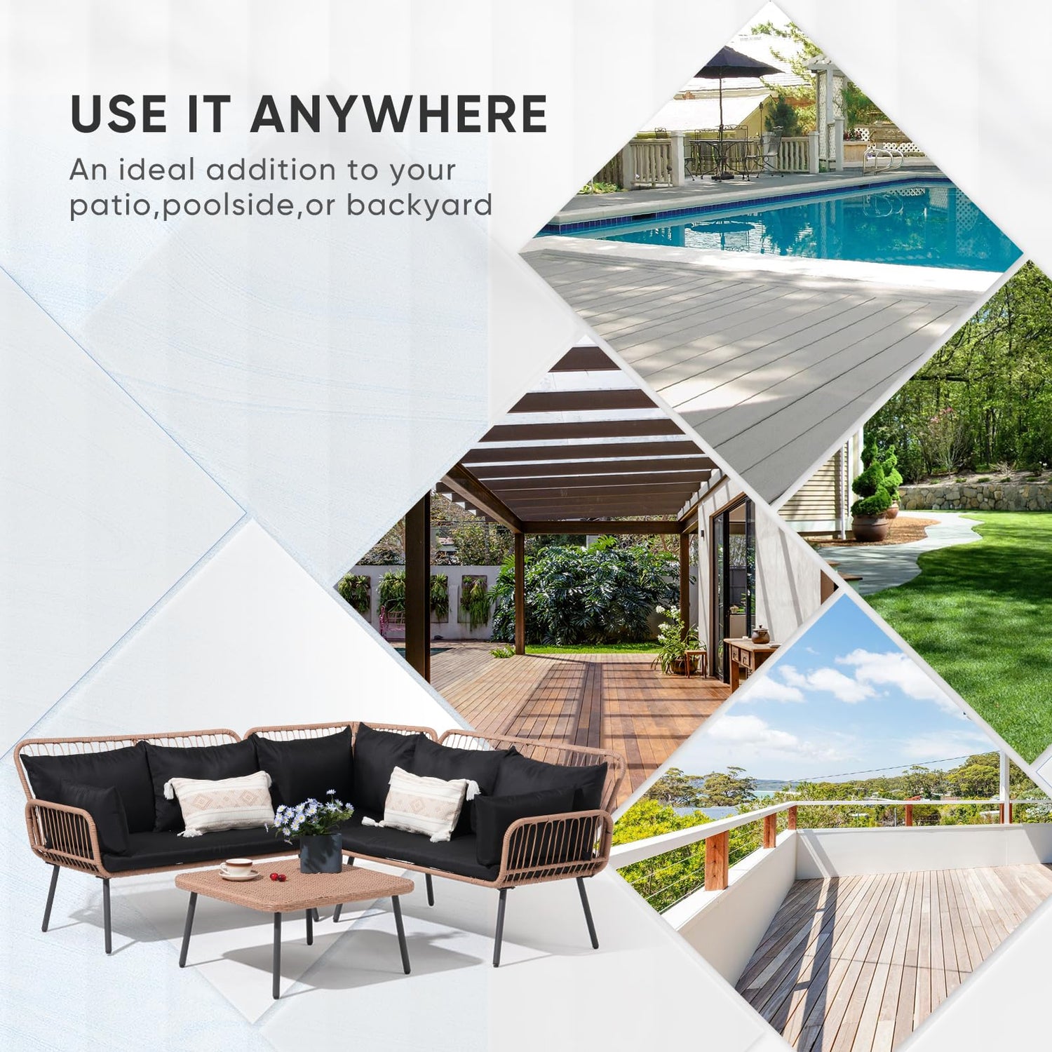 Verano Garden 4 Piece Outdoor Patio Furniture Set, Outdoor Wicker Sectional Couch, Balcony Furniture Set with Cushions & Square Table, Patio Conversation Set for Porch, Backyard (Black, 4PCS Sofa Set)