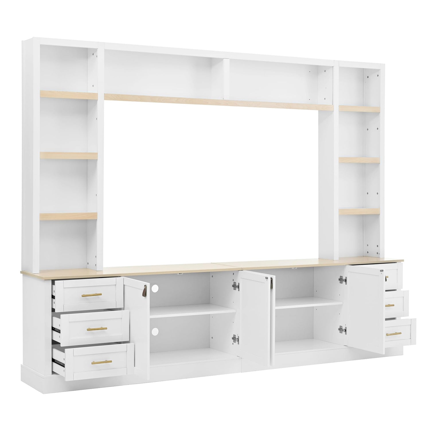 VilroCaz Modern 4-Piece Large TV Stand with Bookshelves for TVs Up to 75", TV Entertainment Center Wall Unit Media Center with Adjustable Shelves and 6 Drawers, TV Hutch for Living Room (White-8.17)