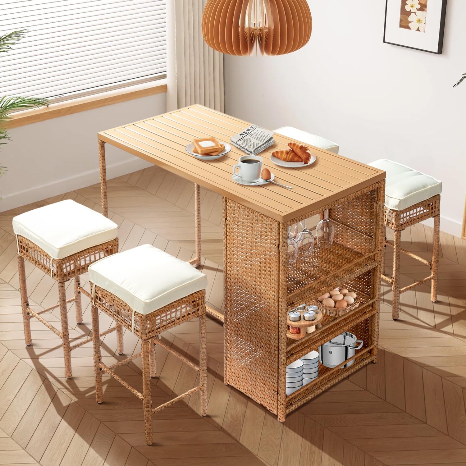 • Smart Storage Solutions: Maximize space with this patio bar sets—built-in wine glass holder + under-table storage. Stools tuck neatly underneath, saving 50% space when not in use