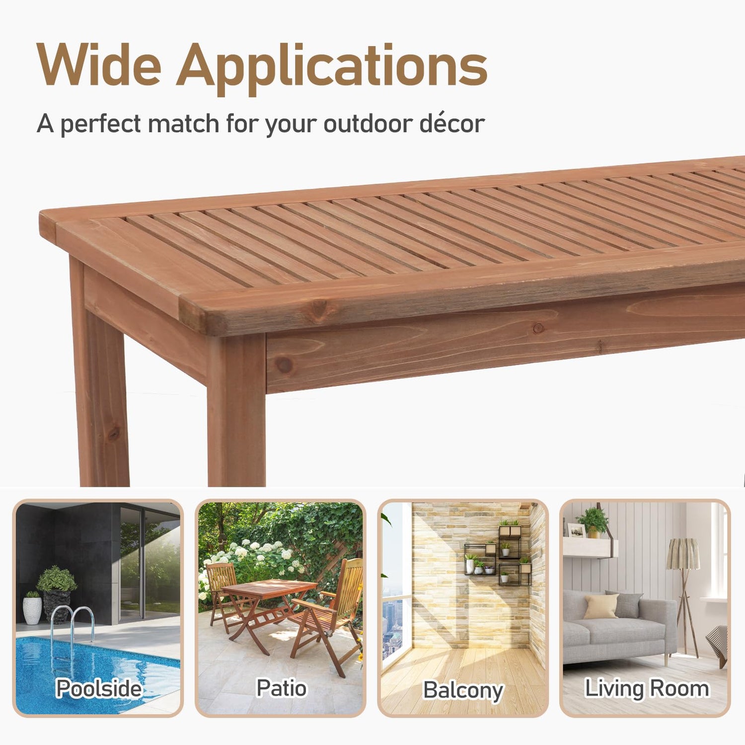 - 【Weather & Water Resistant】 Designed for the outdoors, the wood is treated to withstand the elements. It resists warping, cracking, and fading from sun and rain exposure. The slatted design further enhances its durability by promoting airflow and rapid drying.
