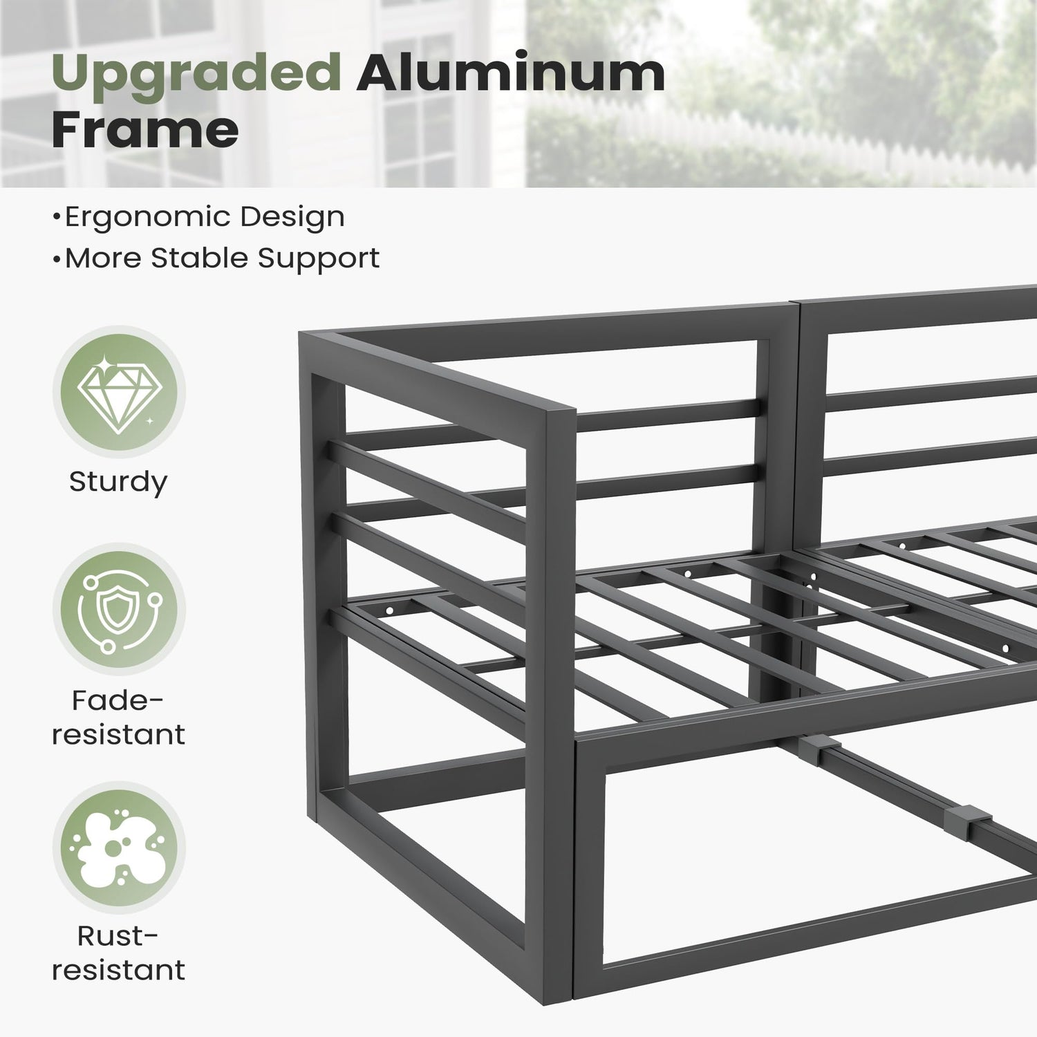• 【Rust-resistant All-Aluminum Frame】Crafted with a rust-proof, powder-coated aluminum frame, this modern patio furniture defies rain, snow, and sun. Its lightweight design allows for easy movement, while superior weather resistance ensures lasting beauty and reliable protection against fading and corrosion for years of outdoor enjoyment.