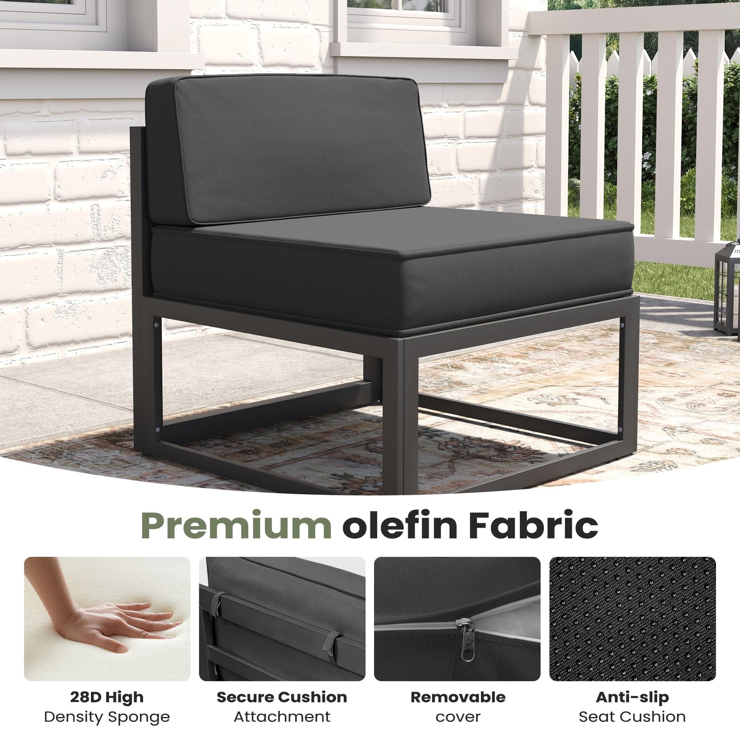 • 【5-Inch Thick Olefin Cushions】Our patio set features upgraded 5-inch thick cushions wrapped in soft, breathable, and fade-resistant olefin fabric. Filled with high-density foam, they provide exceptional support to reduce fatigue and allow you to fully relax. The cushions are designed with non-slip dots on the bottom to prevent shifting and include a removable zip cover for effortless cleaning.