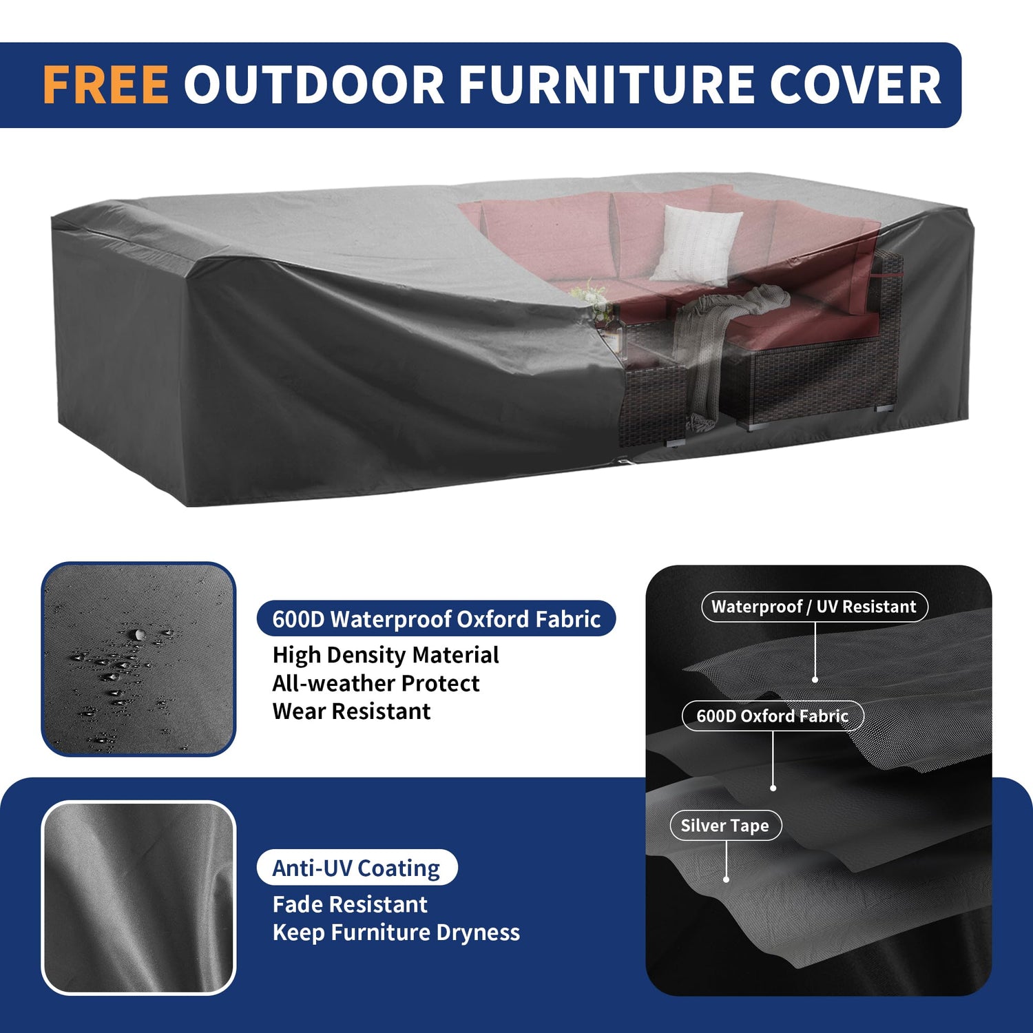 VONZOY Patio Furniture Set, 12-Piece Outdoor Sectional with Waterproof Cover, All-Weather Wicker Patio Conversation Sets for Backyard (Brown with Red Cushion)