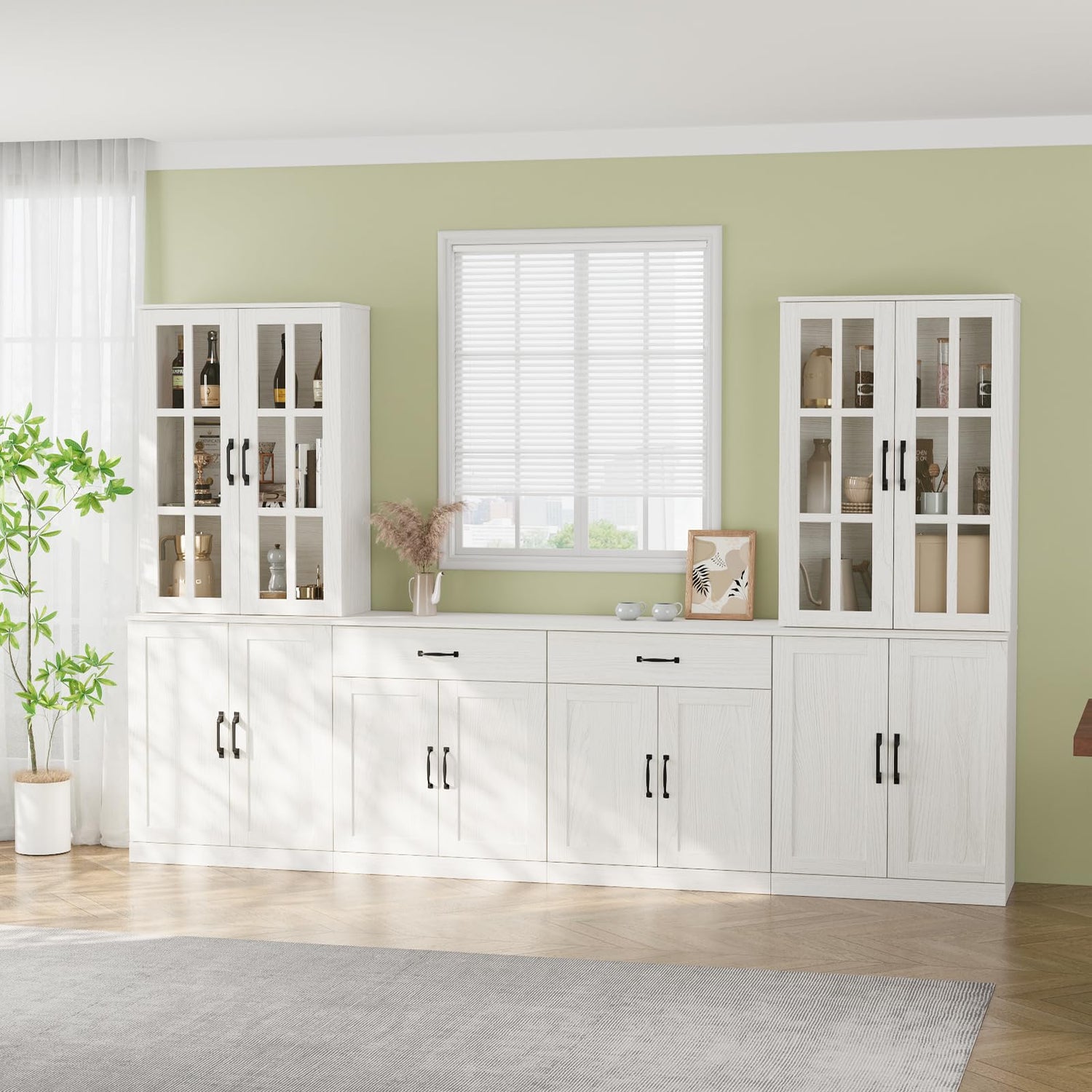 VOWNER 95" TV Stand for TVs up to 75", 4-Piece TV Hutch with Cabinets, Entertainment Center with Bookshelves, Modular TV Console for Living Room, 2D+2F (White)