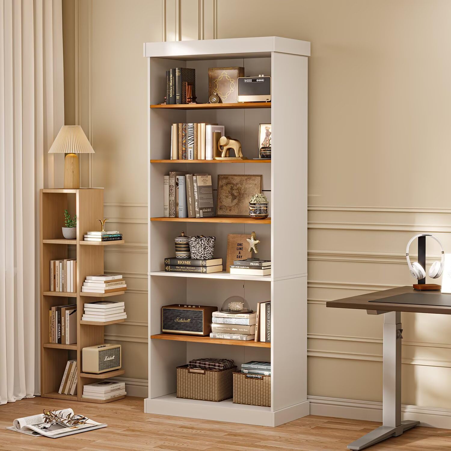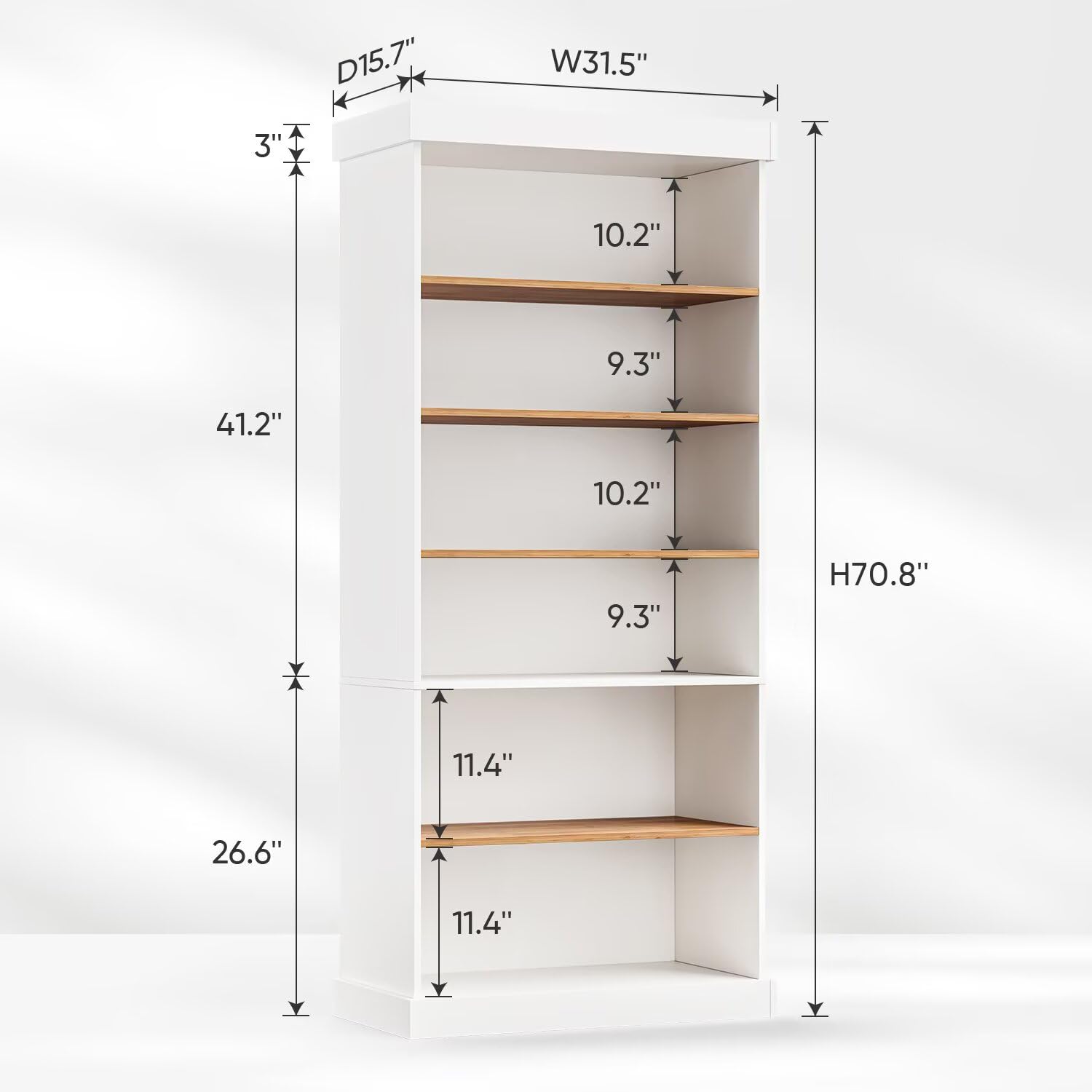 - 【Durable & Sturdy Build】 Crafted from premium engineered wood, this freestanding bookshelf is built for long-term durability. Reinforced construction and anti-tip hardware ensure stability and safety, making it a reliable addition to any home.