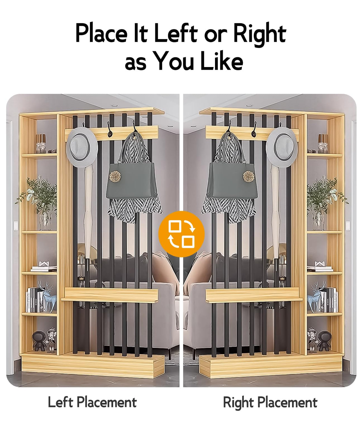 - Powerful storage and display functions: The built-in coat rack and shelves offer ample storage and display options. Hang your coats, jackets, and scarves on the rack, and showcase books, plants, or decorative items on the shelves.It helps keep your belongings organized and adds a decorative touch to the divider.