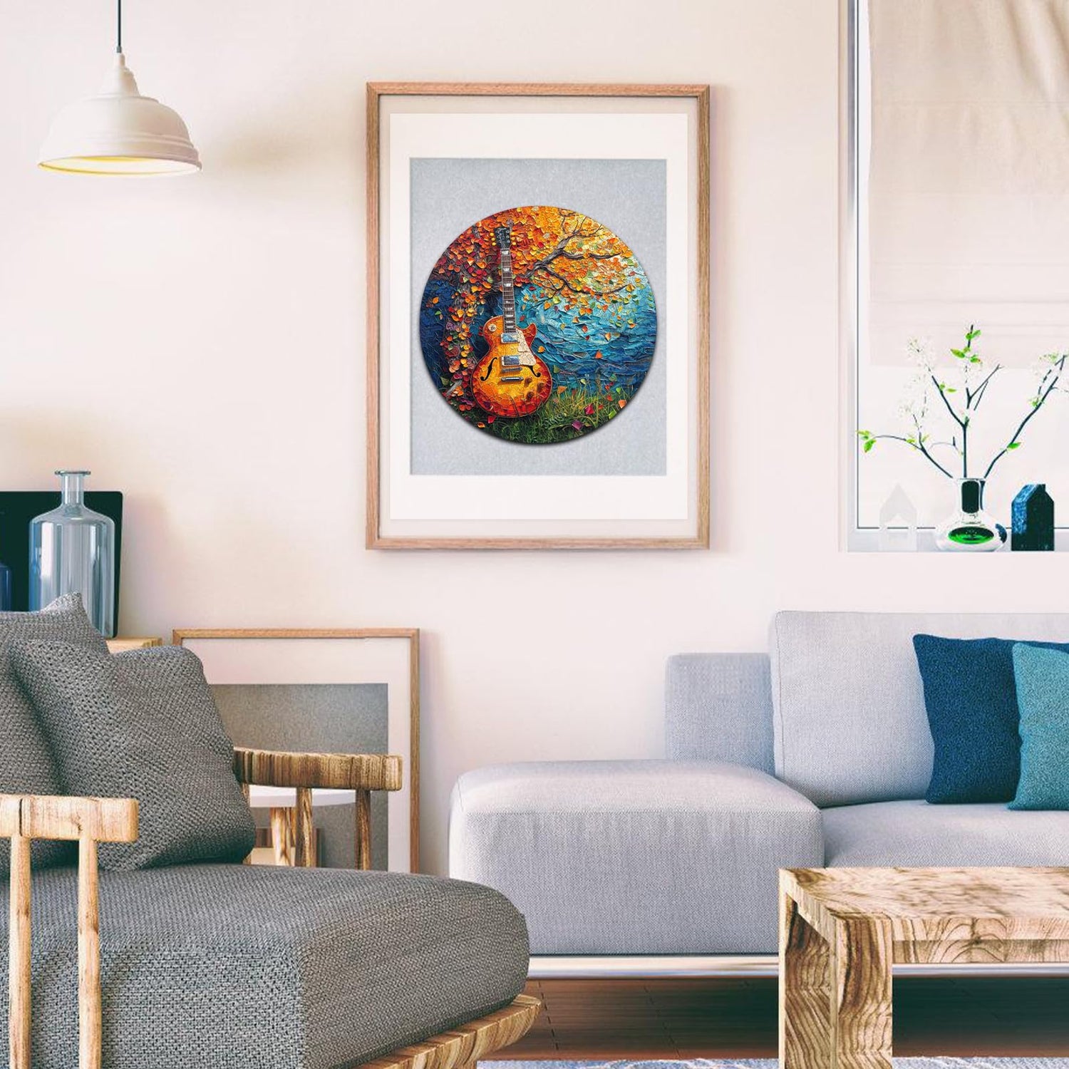 Wooden Puzzle for Adults, Autumn Jigsaw Puzzle, Guitar Wooden Jigsaw Puzzles, Thanksgiving Garden Puzzle, Beautiful Wooden Puzzle with Box Birthday Gifts for Adults and Kids(11.2 * 11.2in-200pcs)