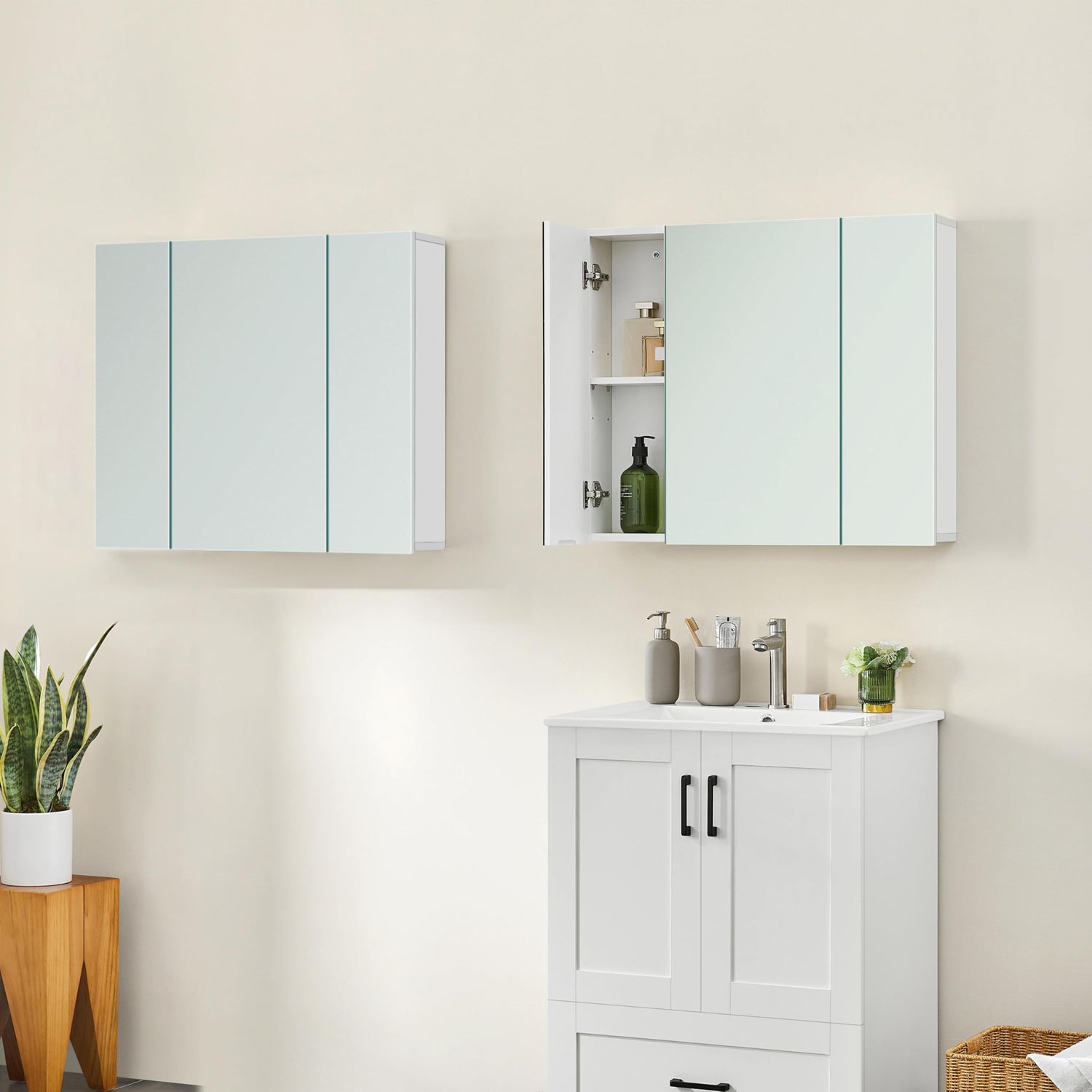 Yaheetech Bathroom Mirror Cabinet with 3 Doors, Wall Mounted Medicine Cabinet with Adjustable Shelf, Storage Cupboard for Living Room, Laundry Room, Mudroom, White