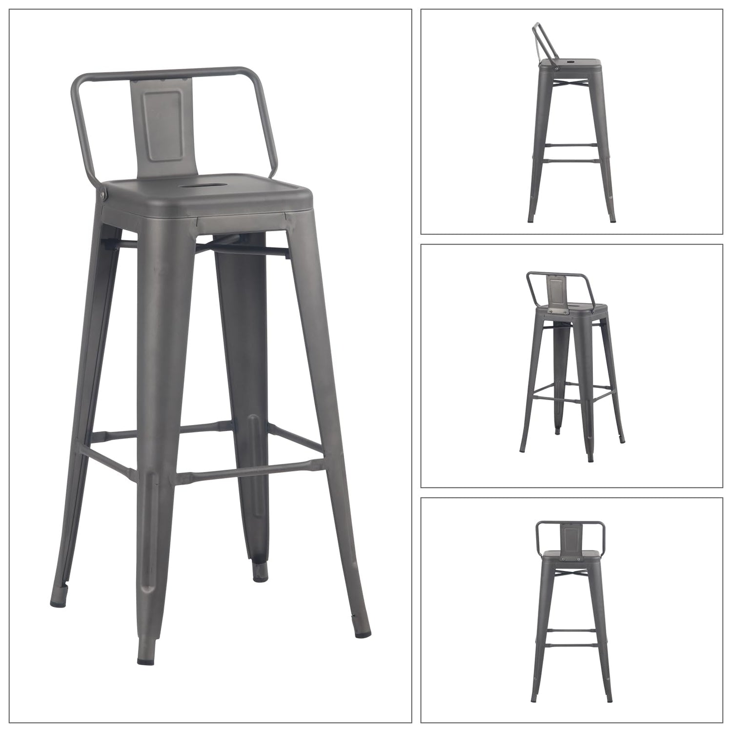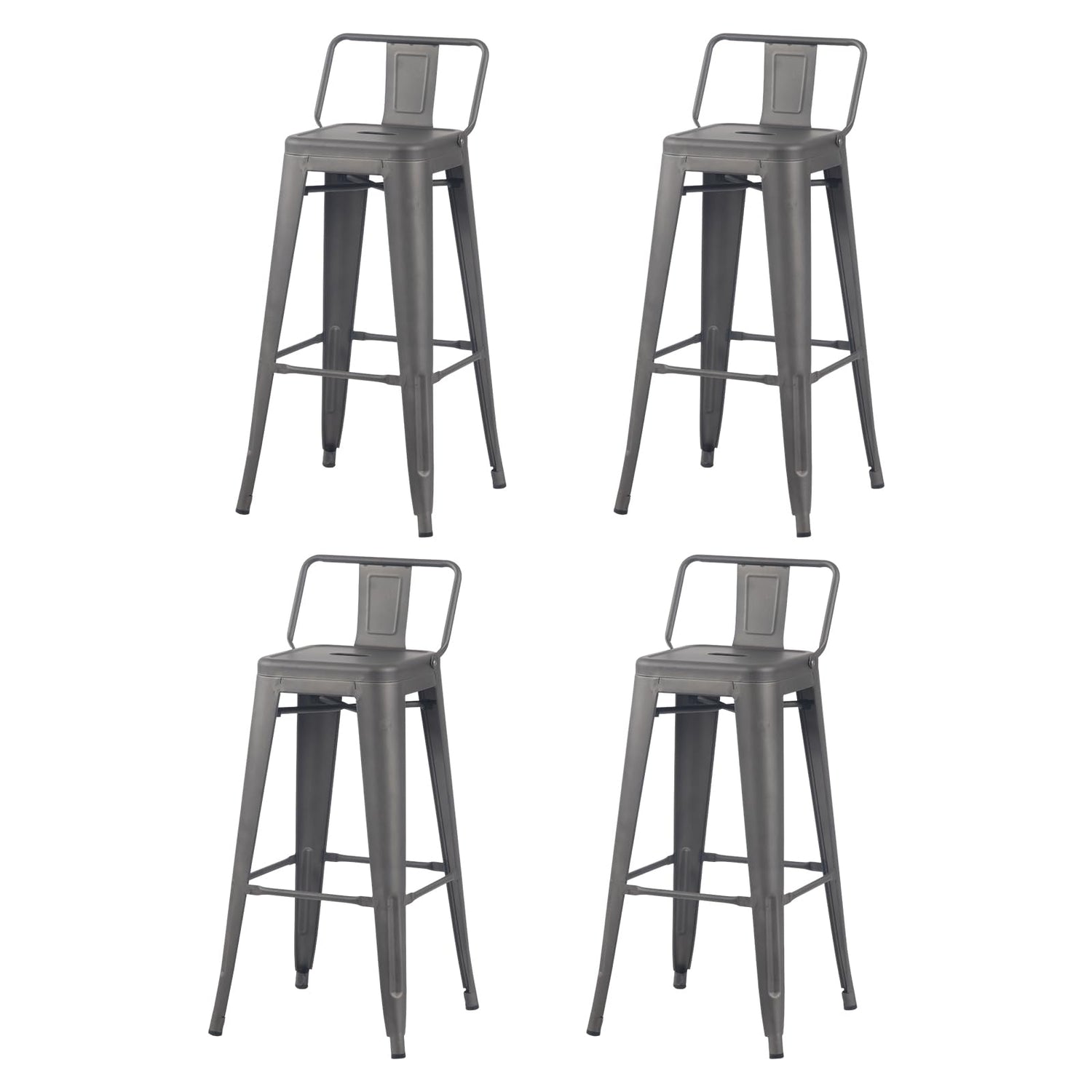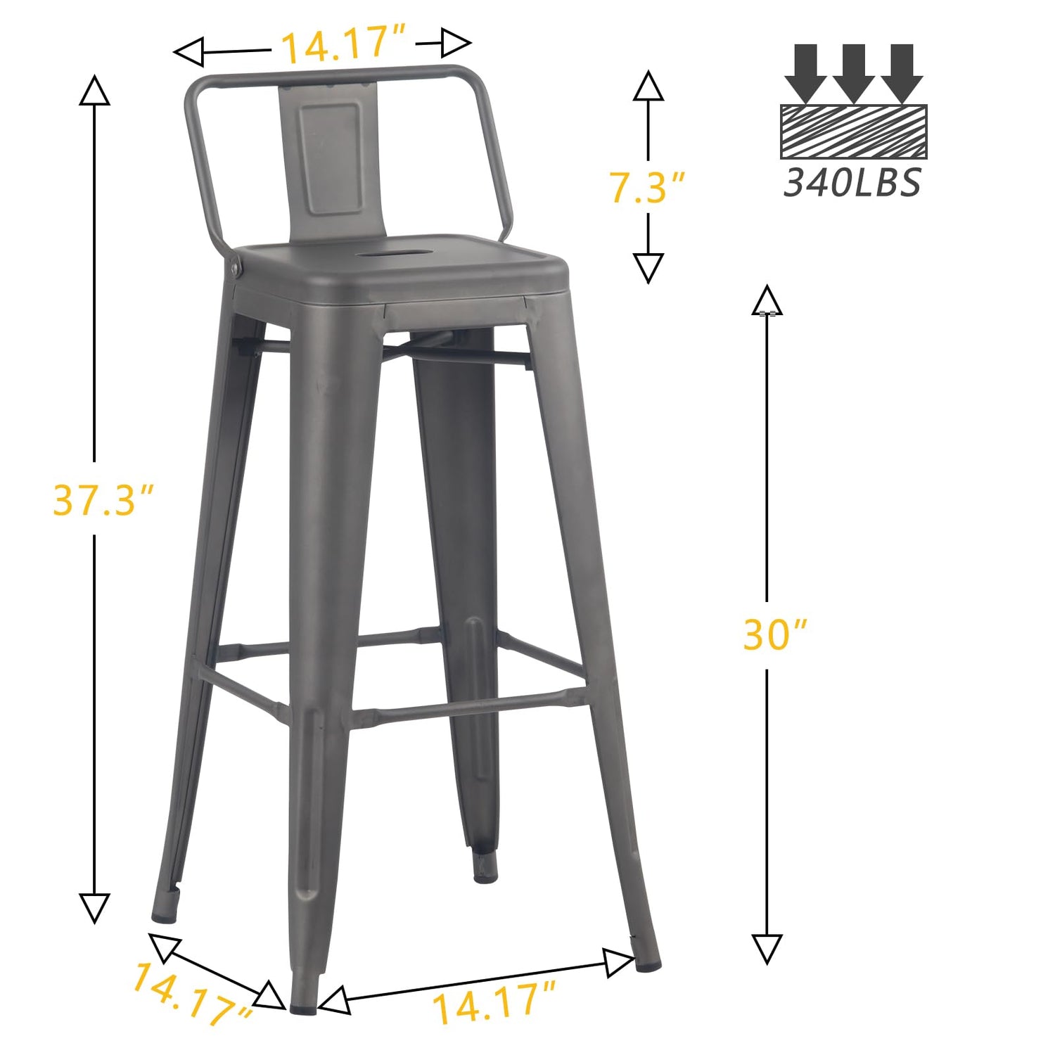 YOUNIKE 30 Inches Metal Barstools Counter Height Bar Stools Set of 4 Indoor Outdoor Patio Bistro Home Kitchen Low Back Stackable Bar Chairs Rusty Grey