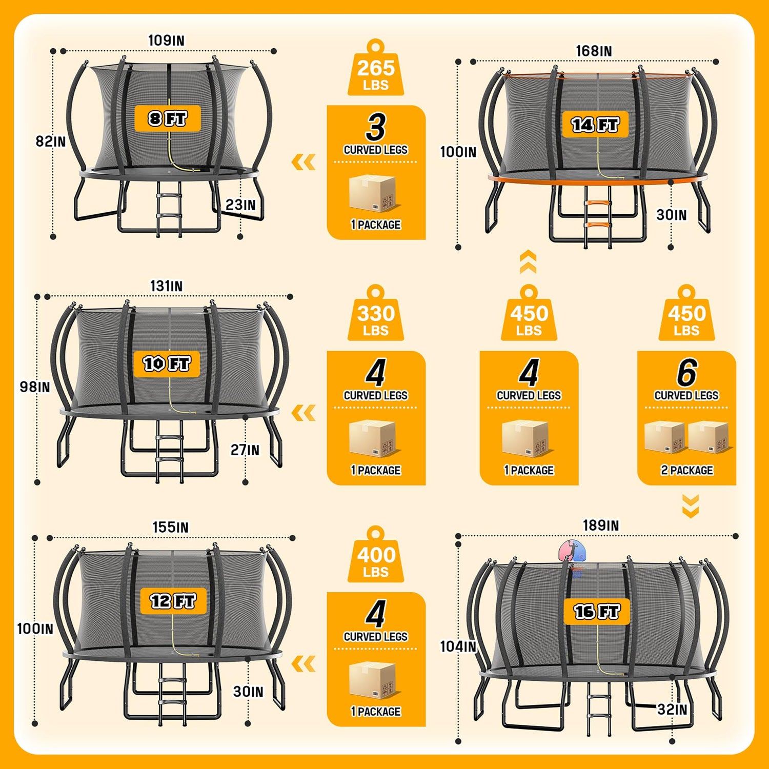 - Your Kid's Joy and Security – Our Top Priority: Designed with your child's safety in mind, our trampolines feature curved leg tubes and heavy-duty galvanized steel, ensuring a smoother, more balanced bounce. Safety-first design, meeting ASTM F381-16 global standards.