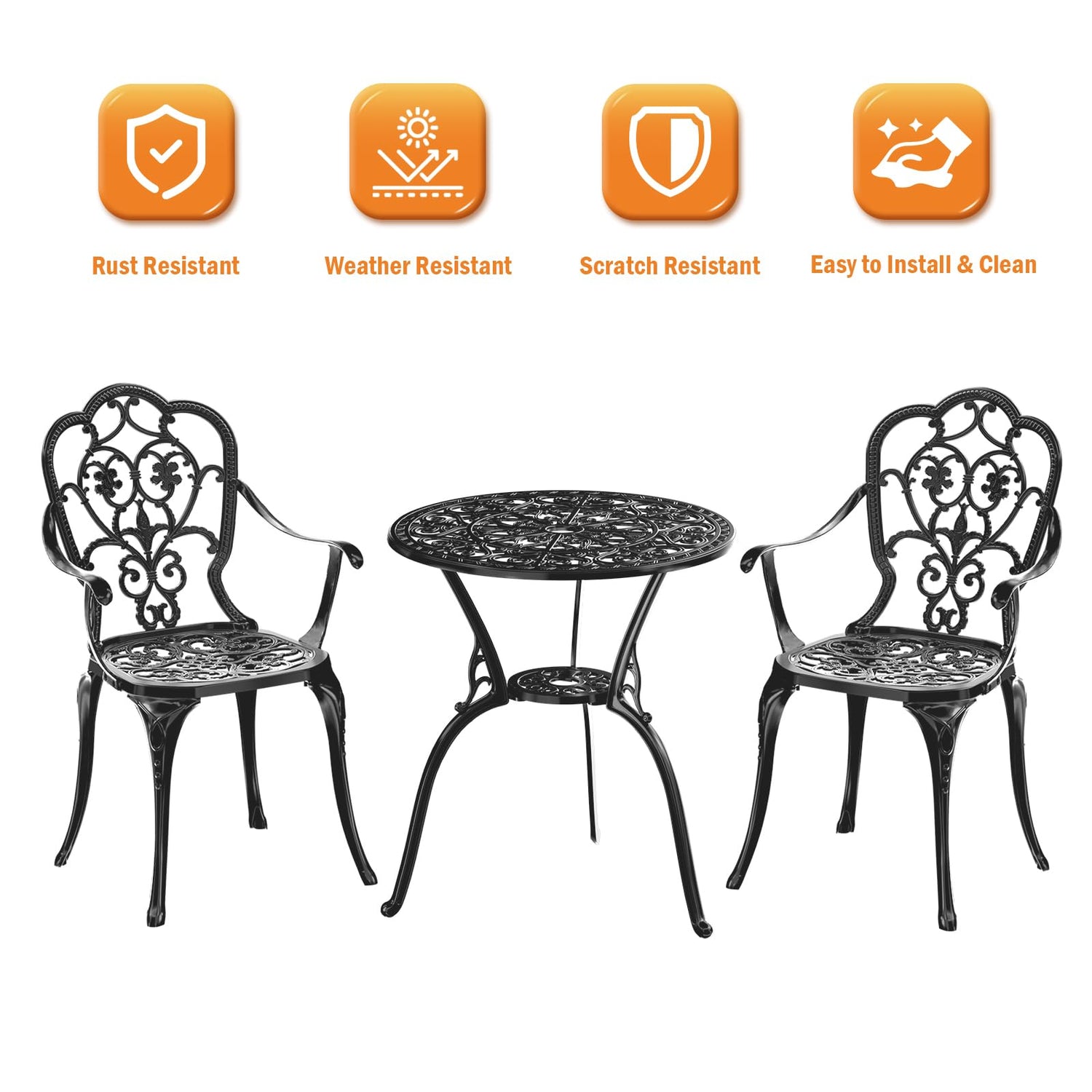 - 【Durable Cast Aluminum】Made of anti-rust, weather-resistant cast aluminum, making bistro set perfect for long-term outdoor use in any climate