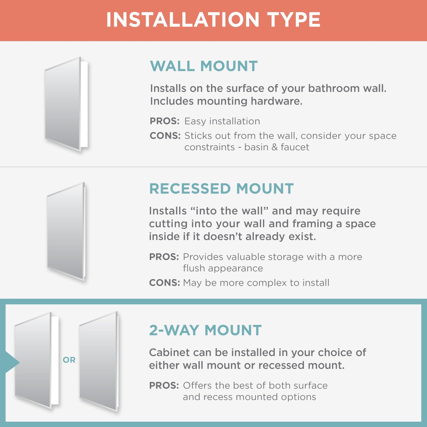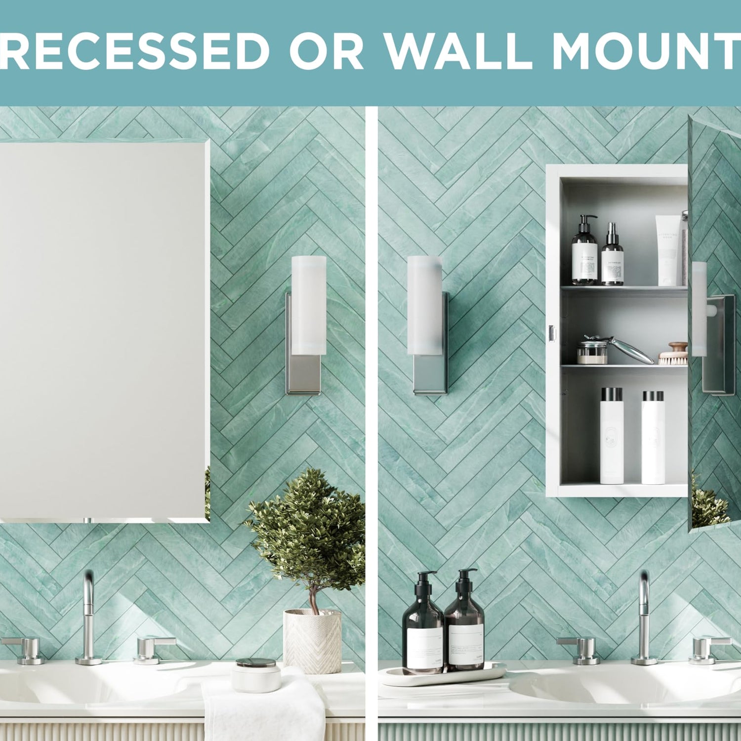 - Versatile Bathroom Fit: Ideal medicine cabinet for small or medium bathrooms, powder rooms, primary baths, or as a bathroom wall cabinet above a vanity. Made for recessed "inside the wall" installation for easy integration into any bathroom cabinet setup.