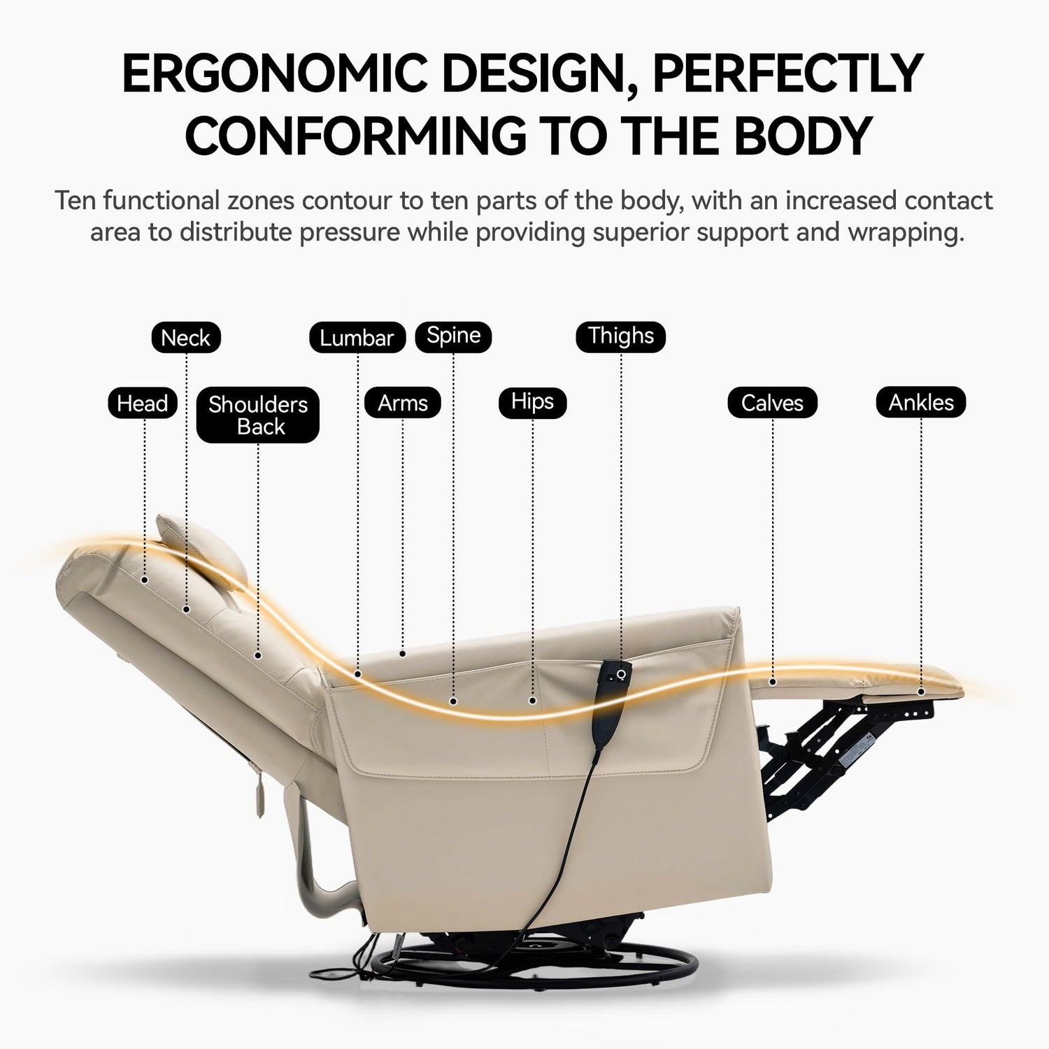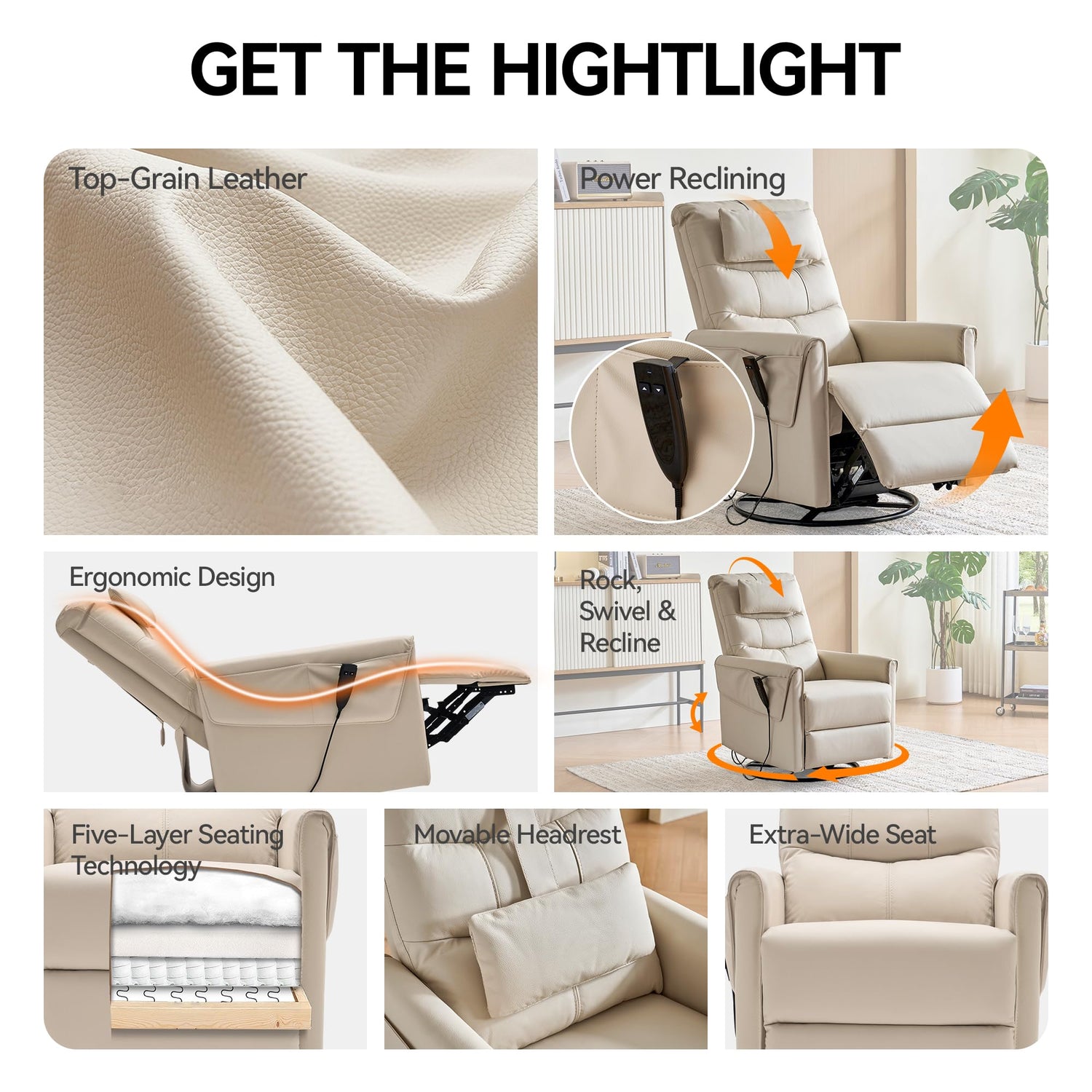 AIRSKY Genuine Leather Recliner Chair, Italian Water-Washing Process,Power Recliner Chair Electric Recliner Chairs for Adults, Swivel Rocker Recliner, Wall Hugger Recliners, Beige, P1