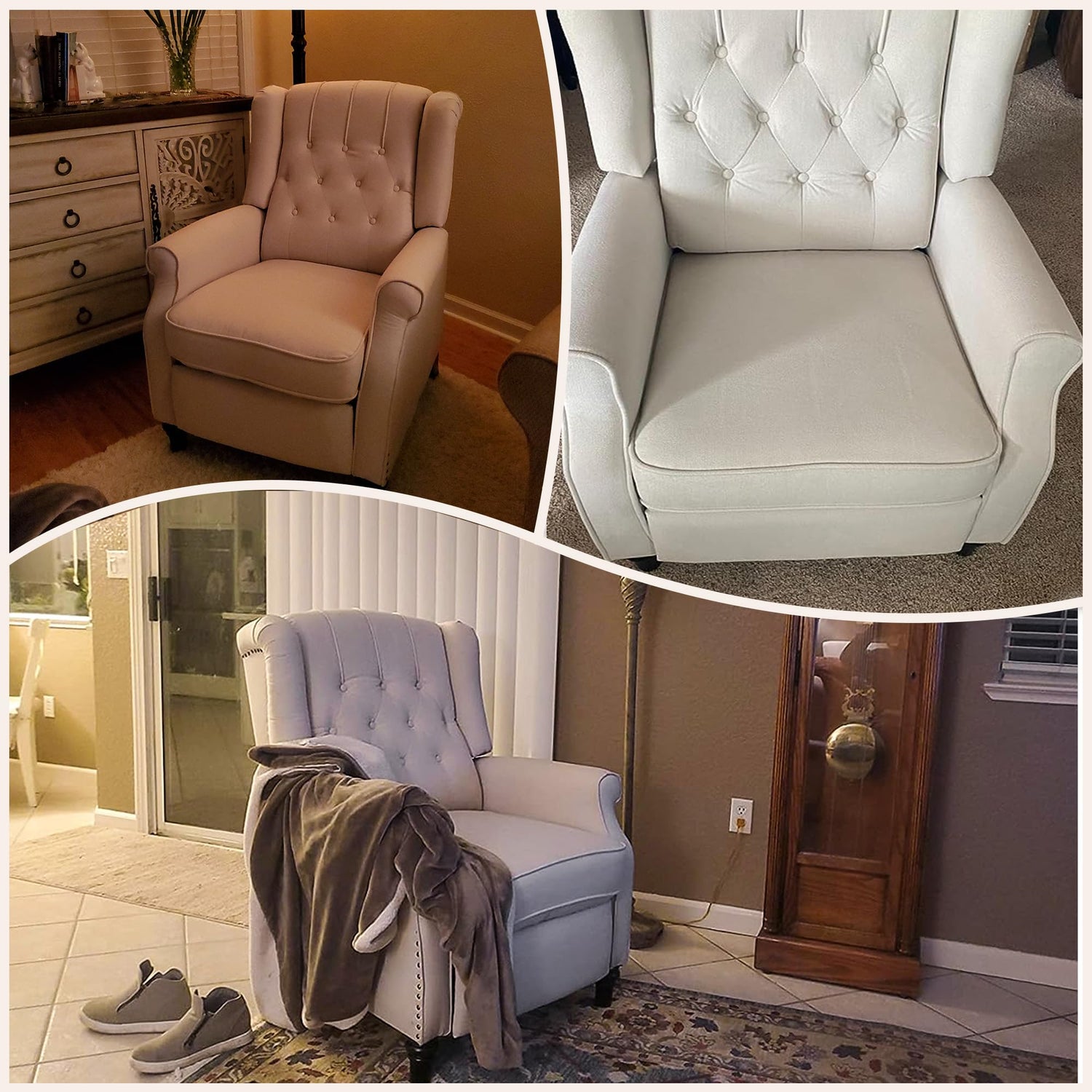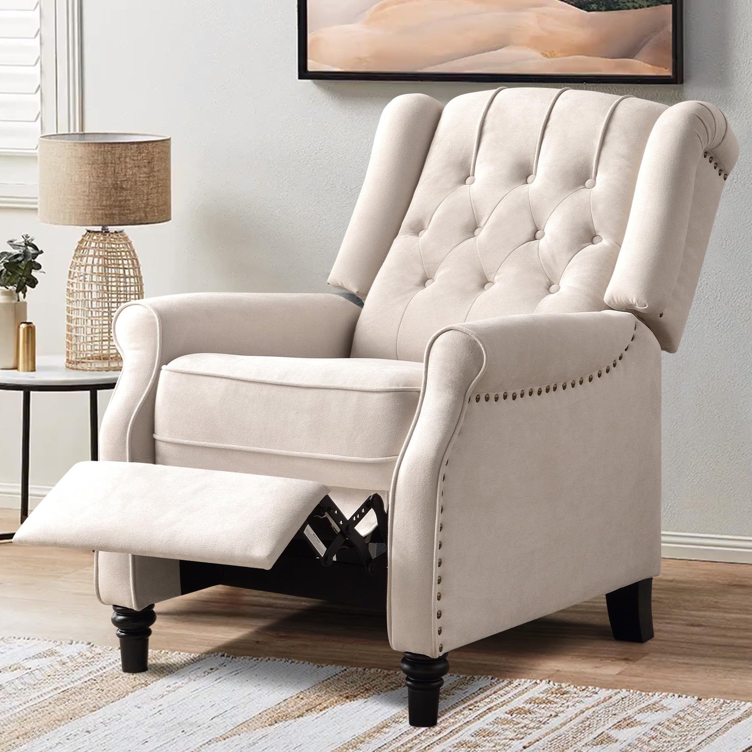 Bonzy Home Push Back Recliner Chair, Mid Century Modern Wingback Chair, Comfy Armchair Fabric Living Room Chairs with Rivet Decoration, Button-Tufted Back, Solid Wood Legs, Beige