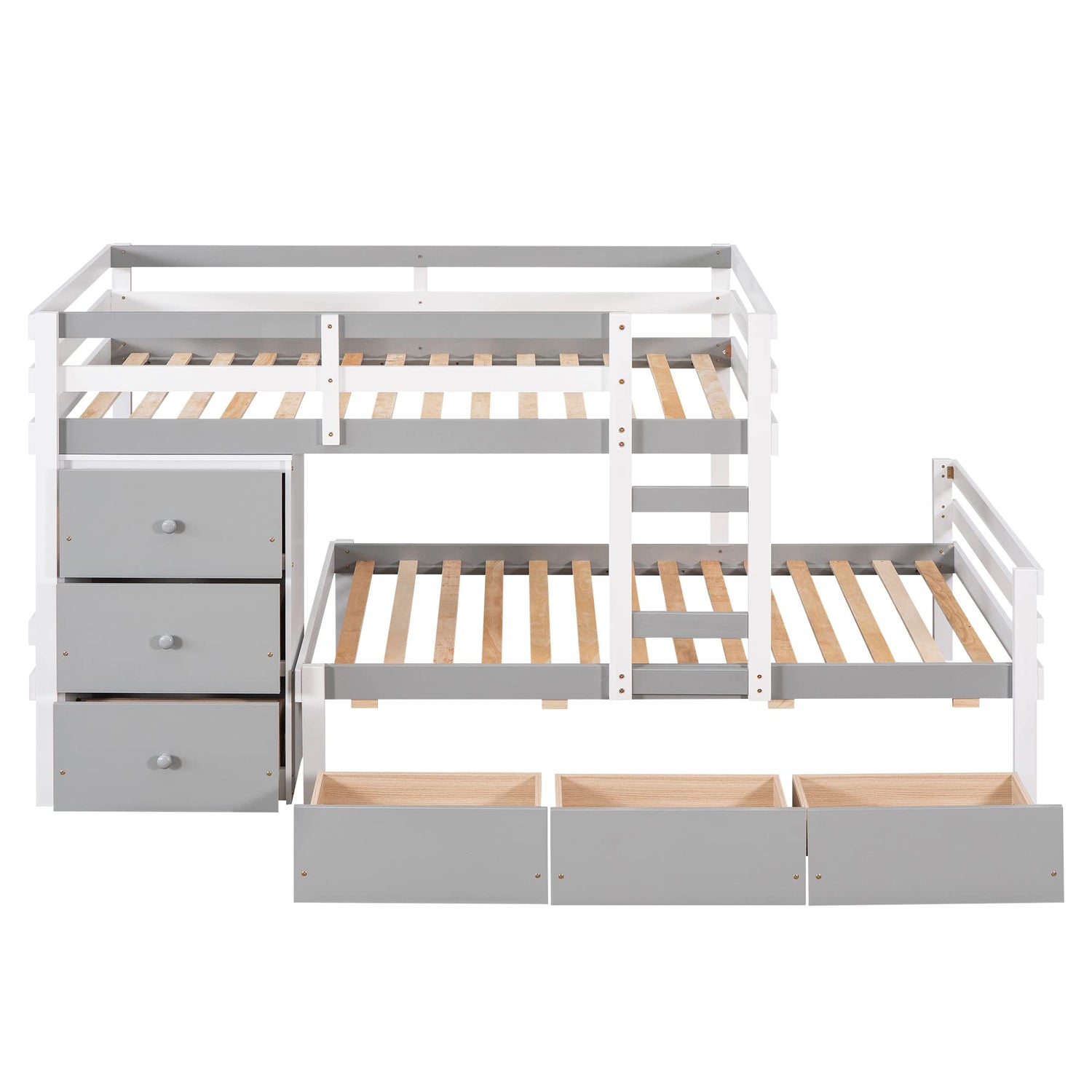 Bunk Bed Twin Over Twin with 6 Storage Drawers, Solid Wood Bunk Beds with Guardrails and Ladders for Kids Boys Girls Teens, No Box Spring Needed (Twin Over Twin Bunk Beds, Gray)