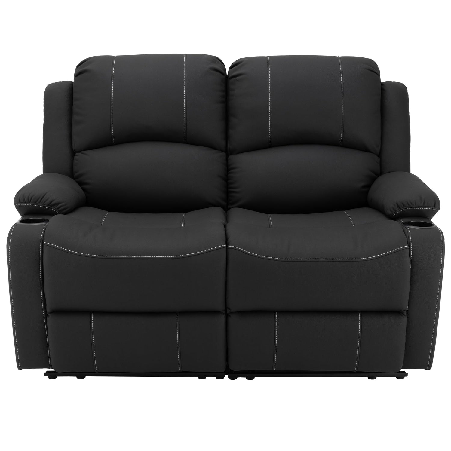 Camper Comfort 58" Wall Hugger Reclining RV Theater Seats | Double Recliner RV Sofa | RV Couch | Wall Hugger Recliner | RV Theater Seating | RV Furniture (Manual, Black w/White Stiching)
