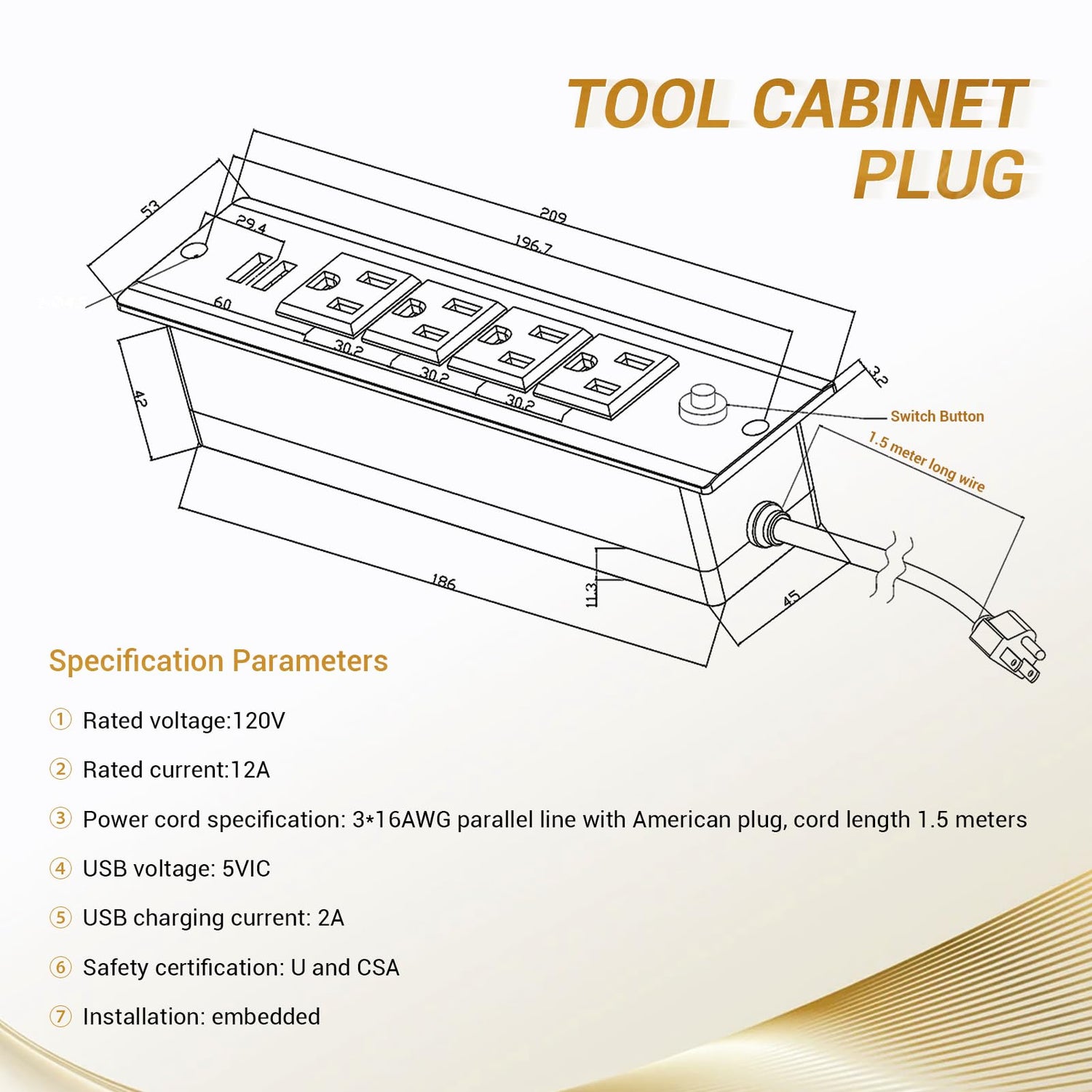 - 【UPGRADE FUNCTION】: This tool cabinet with drawers is equipped with built-in power outlets (4 power outlets and 2 USB ports) with overcurrent protection switches to allow you to charge small machines while operating.