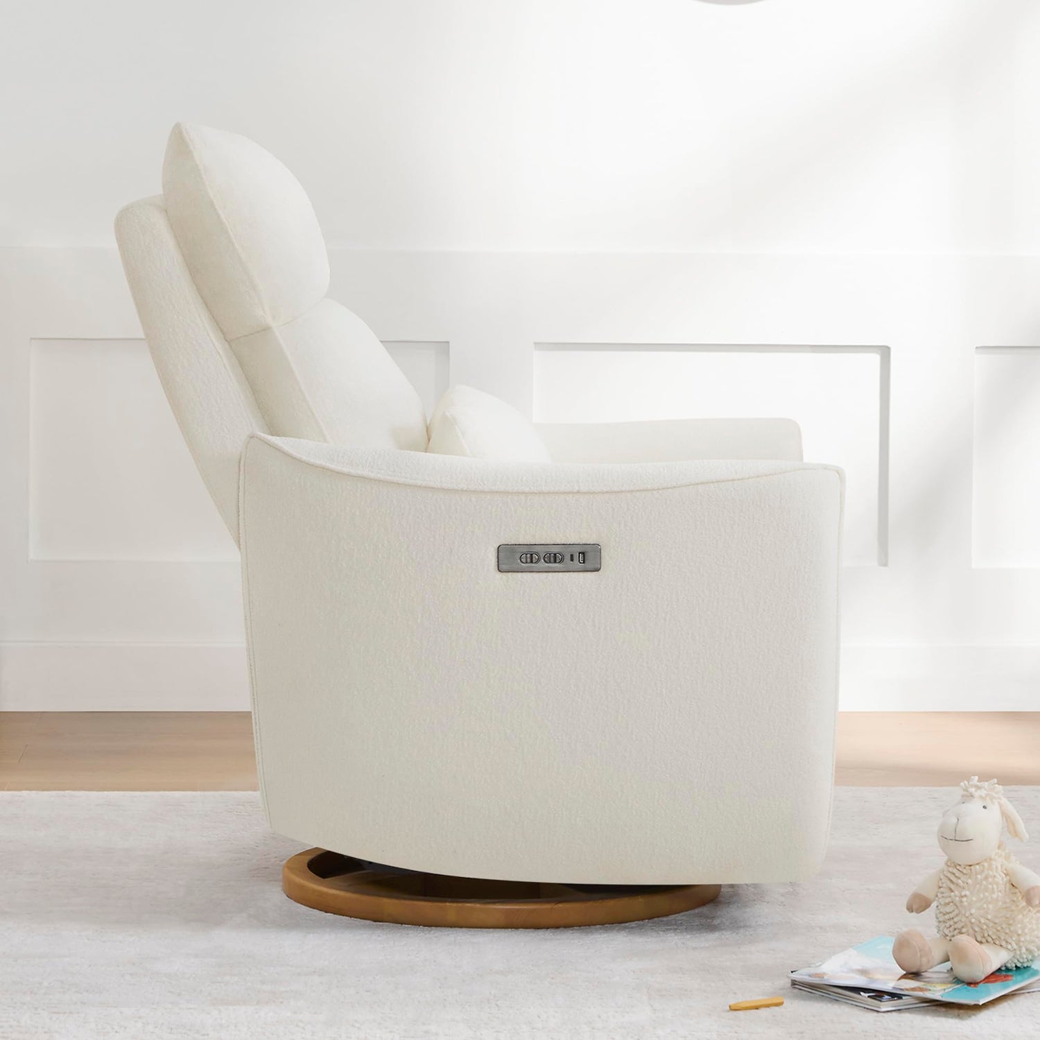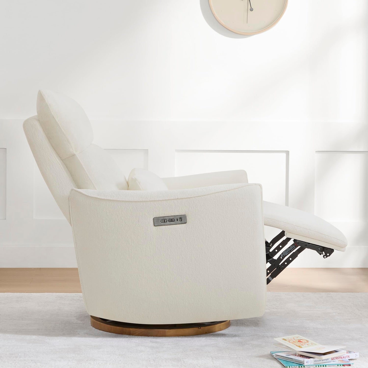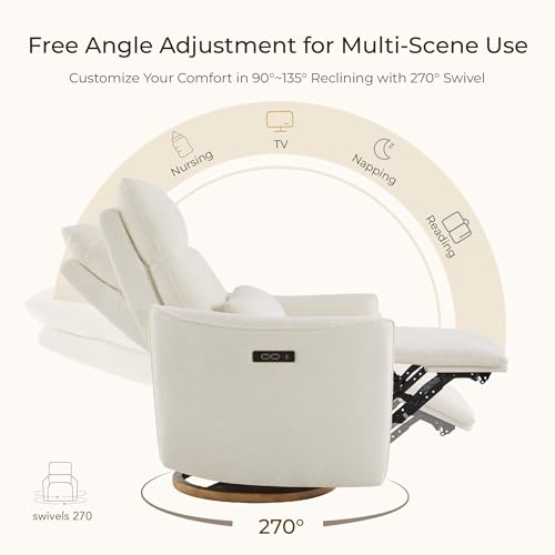 CHITA Swivel Rocker Recliner Chair, Power Nursery Glider Recliner, Nursery Rocking Chair with Adjustable Power Headrest, FSC Certified, Solid Wood Base, Cream