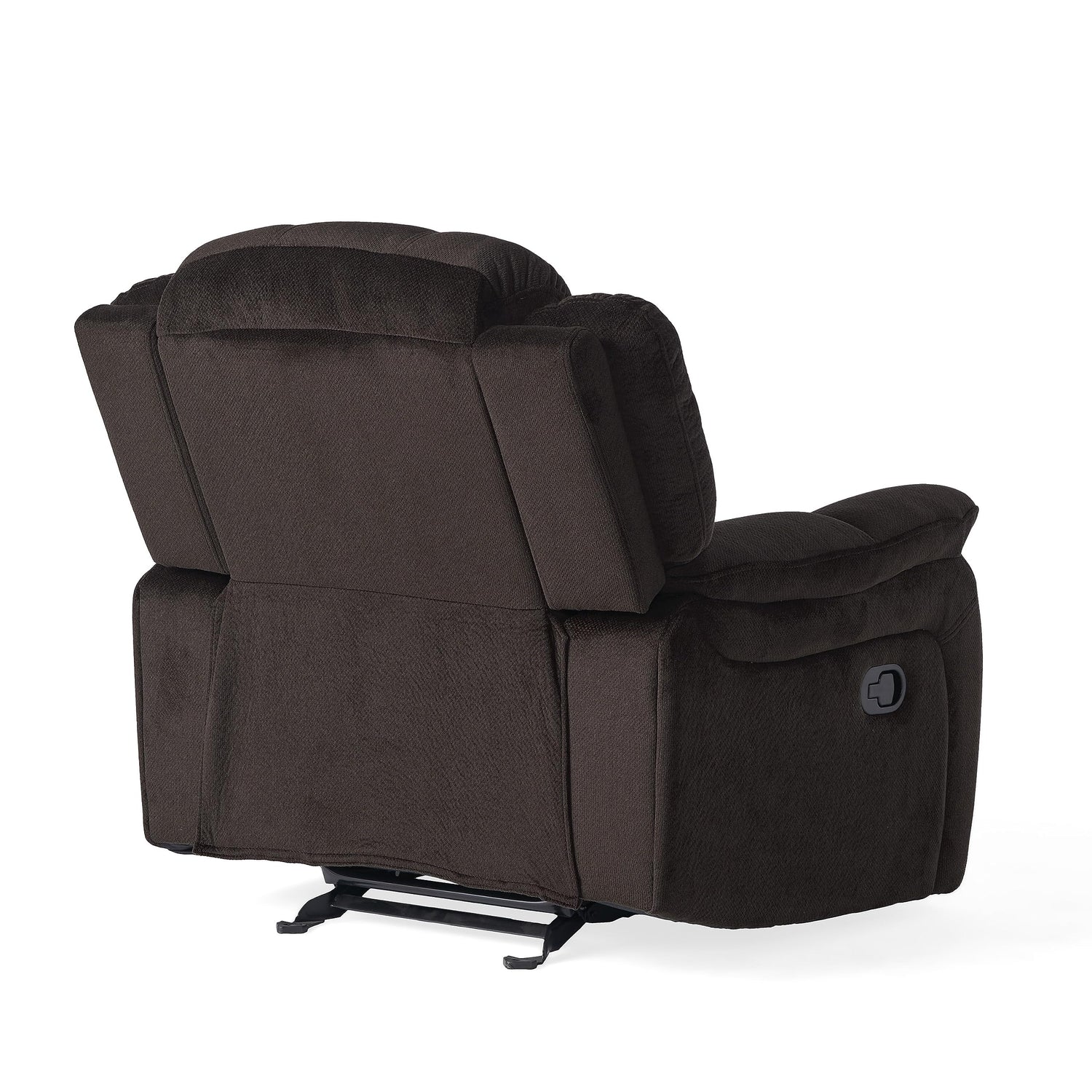Details: The Hawthorne Chocolate Glider Recliner is the perfect companion for any media room or living room. It 's elegant style and comfort gives relaxation a whole new meaning. Includes One (1) Recliner Material: Fabric Fabric Composition: 100% Polyester Leg Material: Plastic Multiple Color Options Assembly Required Dimensions: 39.25 inches deep x 40.25 inches wide x 40.00 inches high Reclined Dimensions: 65.50 inches deep x 40.25 inches wide x 30.50 inches high Seat Dimensions: 21.75 inches deep x 22.25 inches wide x 19.00 inches high Arm Height: 25.00 inches