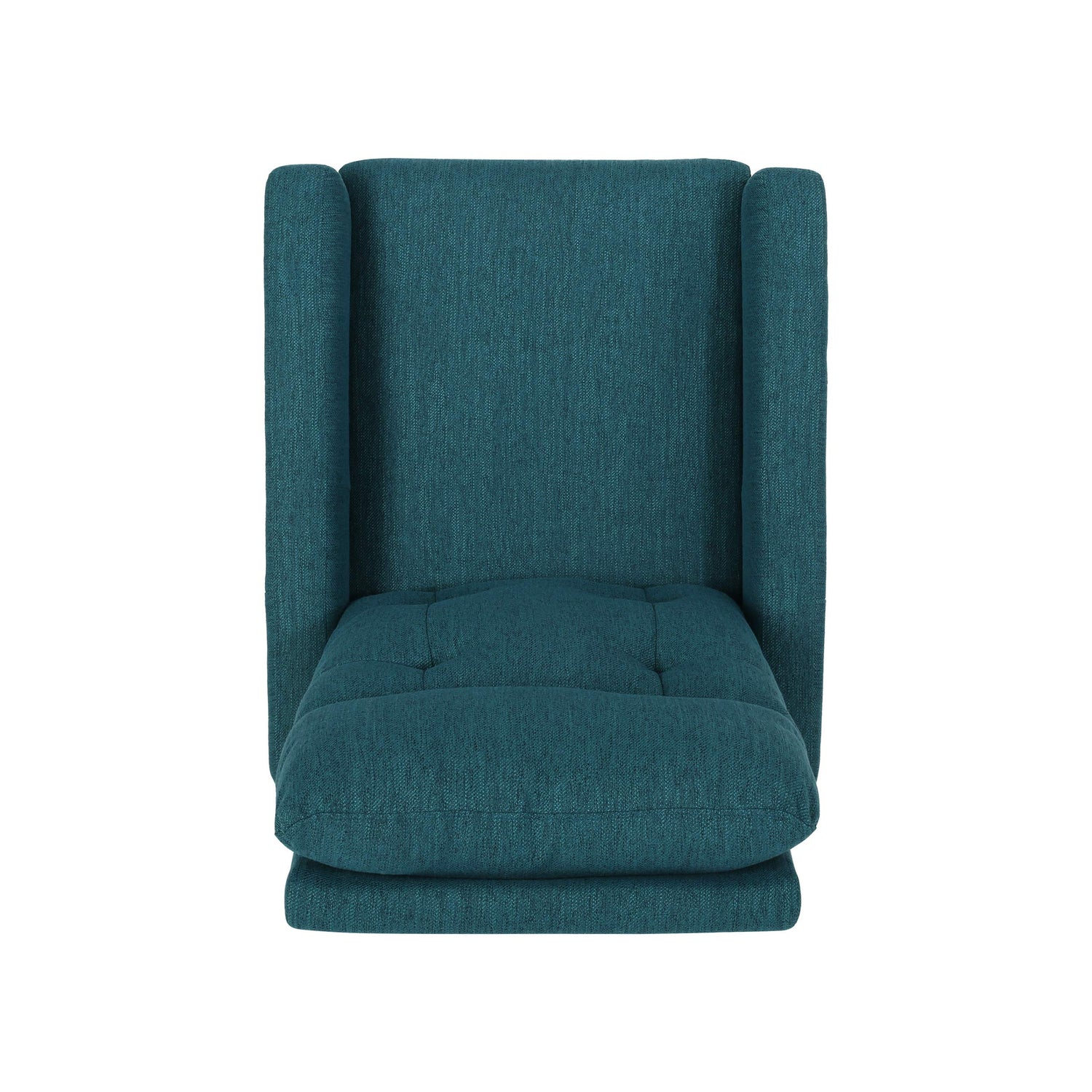 Details: Create a corner of utmost coziness starting from our push-back recliner that features both gliding and swivel functions. From its tufted design to its plush seating, this contemporary piece brings both elegance and comfort to your home. Our recliner many functions allow this chair to be extremely versatile, ranging from a perfect nursery recliner to the ideal place to relax in your living room. With its minimalist style and soft colors, our practical recliner will blend seamlessly with any home décor. cushion material: Fabric arm Height: 22. 25 inches .