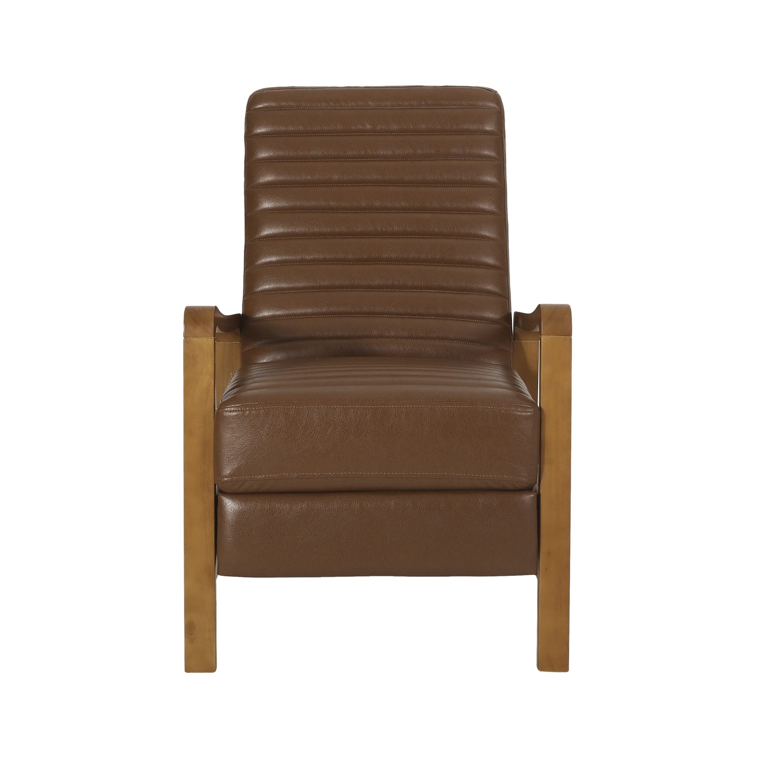 Details: Redefine your living room with cozy comfort and outstanding style. Our convenient recliner chair provides an incredibly high degree of leisure in an attractive package, emphasizing a charming contemporary design with a mid-century modern twist. Featuring beautiful channel stitching and a rich wood frame, this recliner pairs perfectly with the push-back functionality allowing for high comfort with little effort. Sure to become the new favorite spot of leisure, you and your family will surely enjoy this recliner for years to come.; Material: Fabric or Faux Leather Fabric Composition: 100% Polyester Frame Material: Rubberwood Multiple Color Options Frame Finish: Teak Hand-Crafted Details Assembly Required Dimensions: 35.75 inches deep x 24.75 inches wide x 38.00 inches high Extended Dimensions: 55.50 inches deep x 24.75 inches wide x 33.75 inches high Seat Dimensions: 22.00 inches deep x 20.50 inches wide x 20.00 inches high Arm Height: 23.75 inches Weight Capacity: 300 lbs