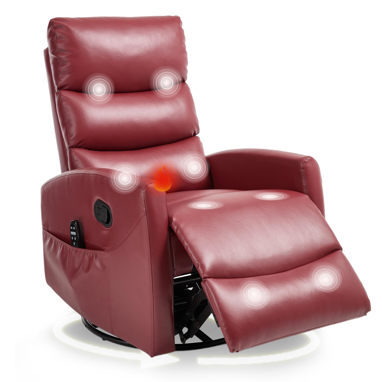 cinkehome Small Swivel Rocker Recliner Chair with Heated Massage, Upholstered Nursery Glider Recliner Chair, High Back, Side Pocket (Red PU Leather)