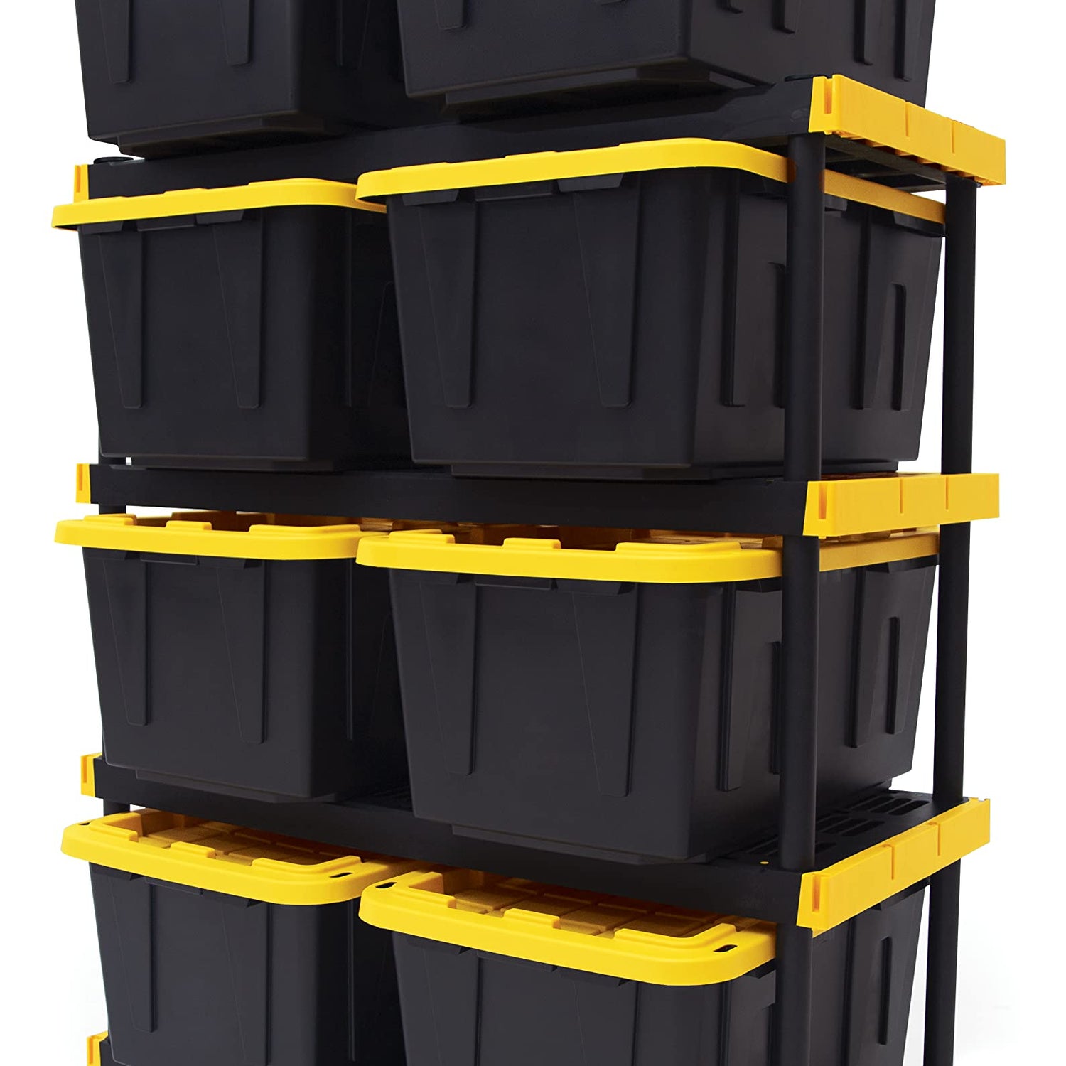 CX Black & Yellow®, Shelving Unit and Heavy Duty Storage Containers, Extremely Durable® (Shelf + 27 Gallon Container (8-Pack)