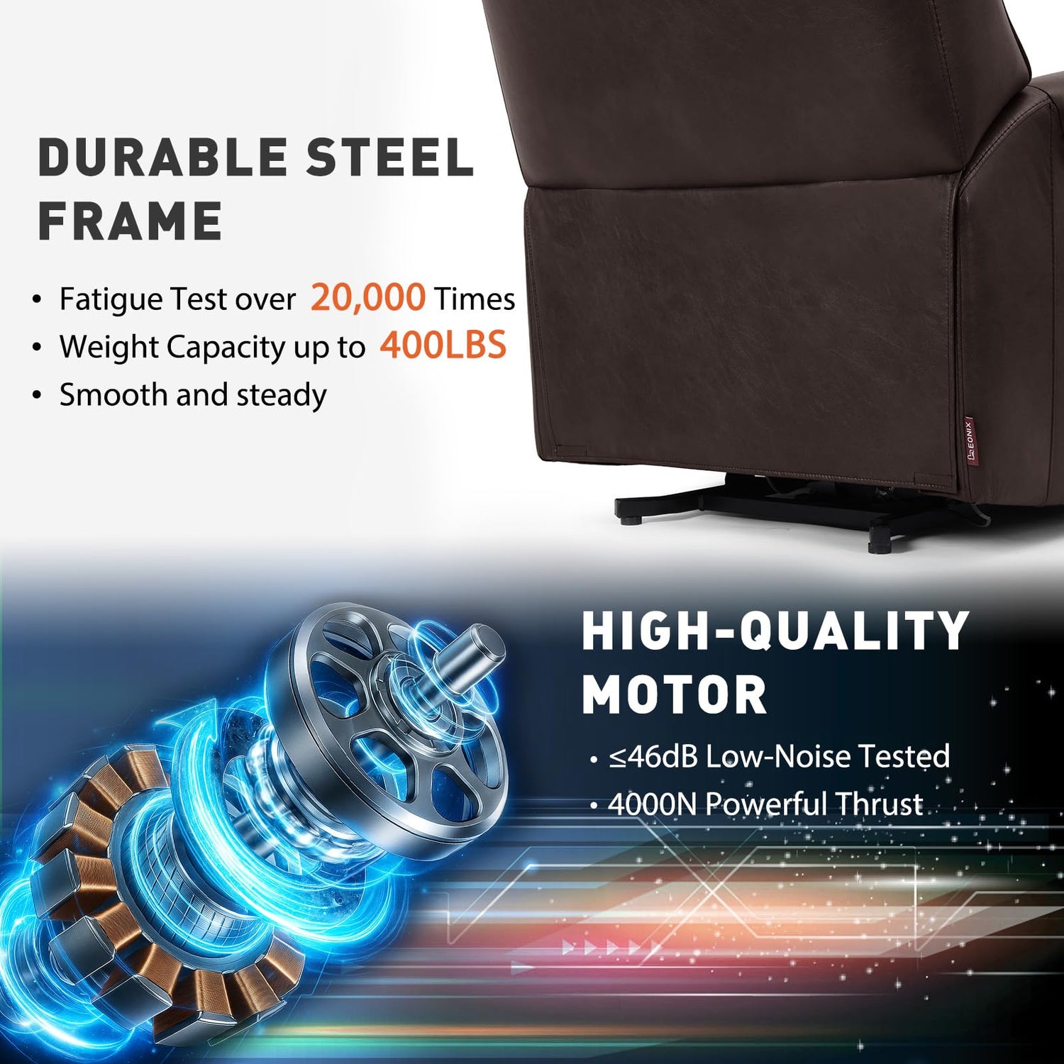 EONIX Dual Motor Lay Flat Power Recliner Chair, Mid Century Wingback Recliner with Independent Adjustable Backrest and Extended Footrest, 400lbs Heavy Duty, Breathable Faux Leather, Dark Brown