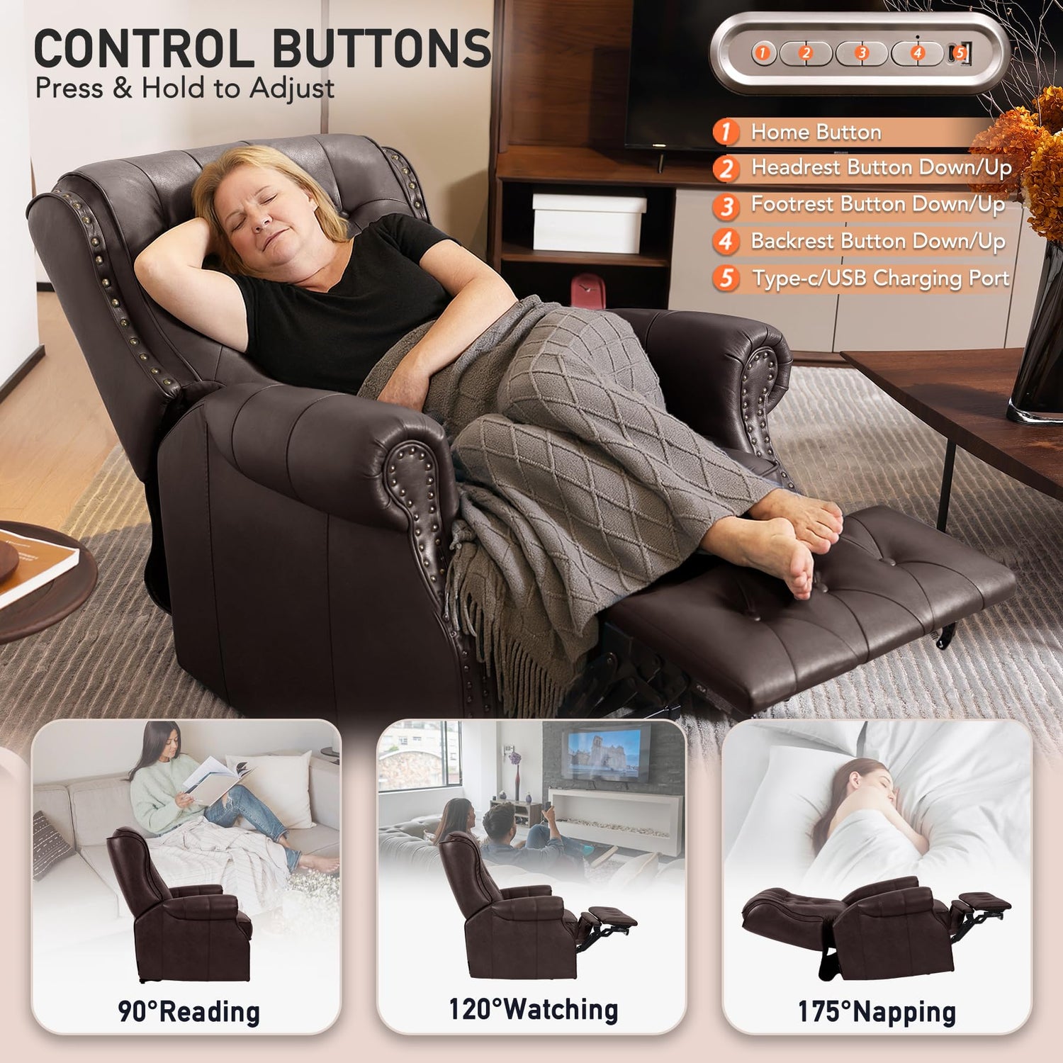 - Ergonomic Design: Dual motors provide relatively precise control over the chair’s key adjustment parts, supporting a more personalized relaxing experience. Whether you’re watching a show, reading, or resting. With two-way adjustable (backrest 90°–175°, footrest 0°–90°), the chair offers a variety of position combinations to adapt to different sitting or reclining habits. As a recliner, it’s ergonomically shaped to fit well with the body: helping to relieve pressure on key body parts and support more comfortable postures. It fits users 5'7''~6'2'' tall.