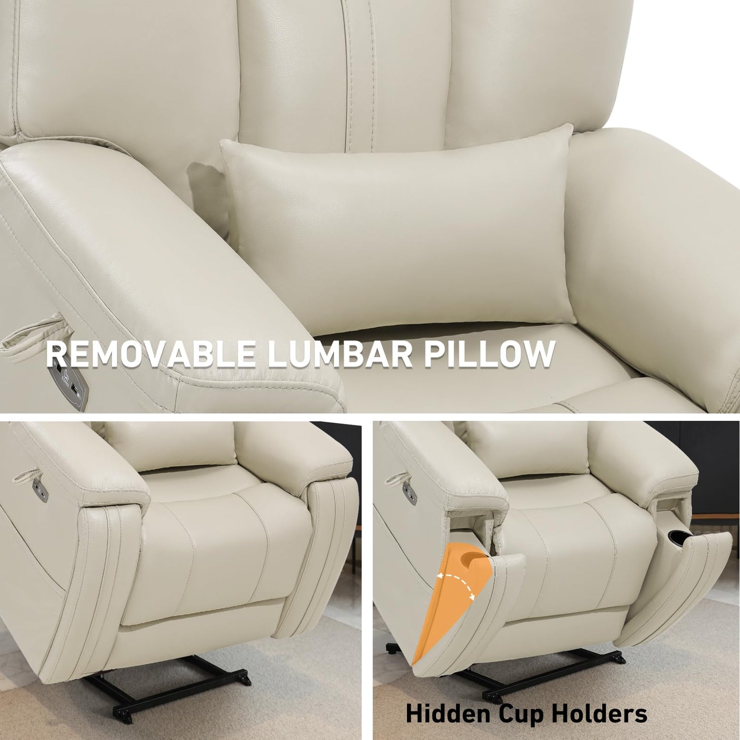 - All-Inclusive Convenience Features & Safety: Perfect for living room chairs setups, it includes TYPE C+USB ports, hidden cup holders and storage compartments, greatly enhancing the storage capacity of the lift chair—blending the practicality of a sofa chair with the elegance of a breathable faux leather chair (using OEKO-TEX certified). The FSC-certified wooden frame ensures stability, solidifying its place as a trusted lift chairs option for daily use.