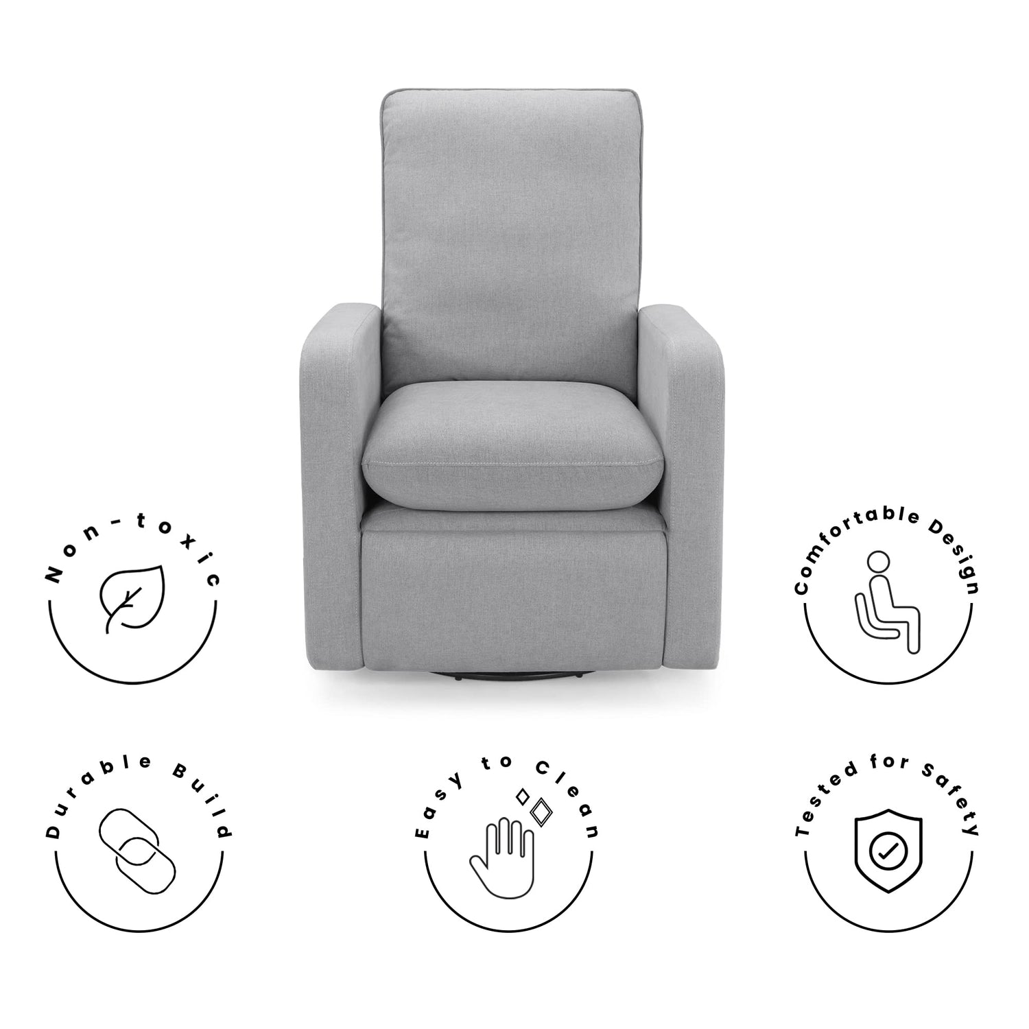 Details: The babyGap Cloud Recliner with LiveSmart Evolve Fabric by Delta Children brings a modern silhouette, clean lines and plenty of cozy comfort to the nursery. The recliner features an easy-to-reach pull tab reclining mechanism that offers two recline positions (footrest up only and footrest up with back reclined), plus it swivels and glides with a smooth motion, so you won't disrupt your little one's sleep while you get comfortable. The included lumbar pillow provides additional support. The perfect combination of performance and suitability, the babyGap Cloud Recliner is upholstered in LiveSmart Evolve fabric that is durable, stain-resistant, and sustainably designed using fabric made from recycled plastic bottles. LiveSmart Evolve will keep the recliner looking and feeling beautiful while helping to divert as many as 30 plastic bottles from waterways and landfills per chair. Create a more sustainable future for your whole family with the babyGap Cloud Recliner.
