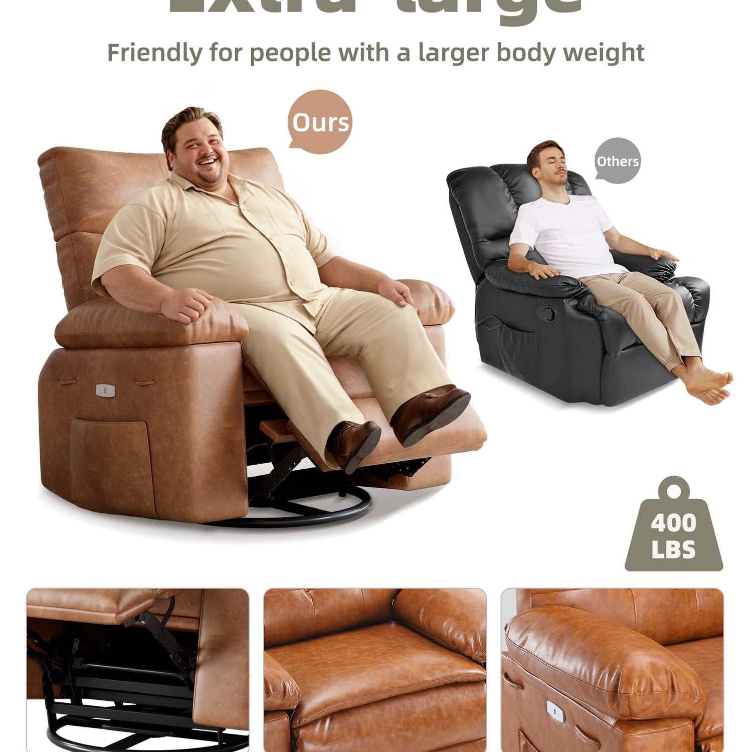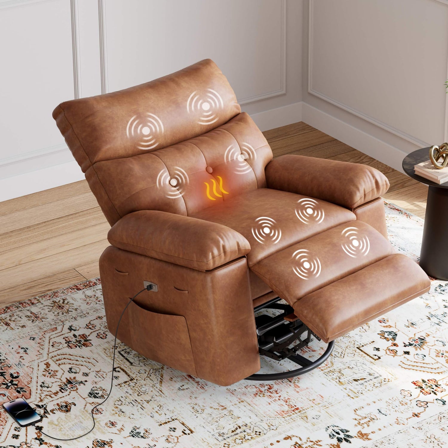 GarveeHome Oversized Power Rocker Swivel Recliner Chair - Heat and Massage, Extra Wide Electric Recliner Ergonomic PU Leather Single Sofa, Tall Back, Padded Seat, Lazy Chair for Living Room