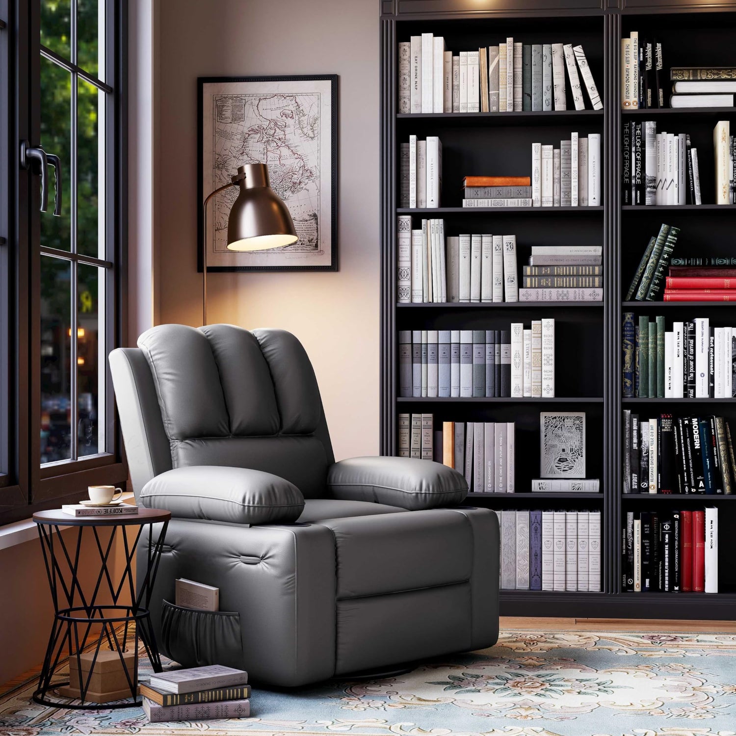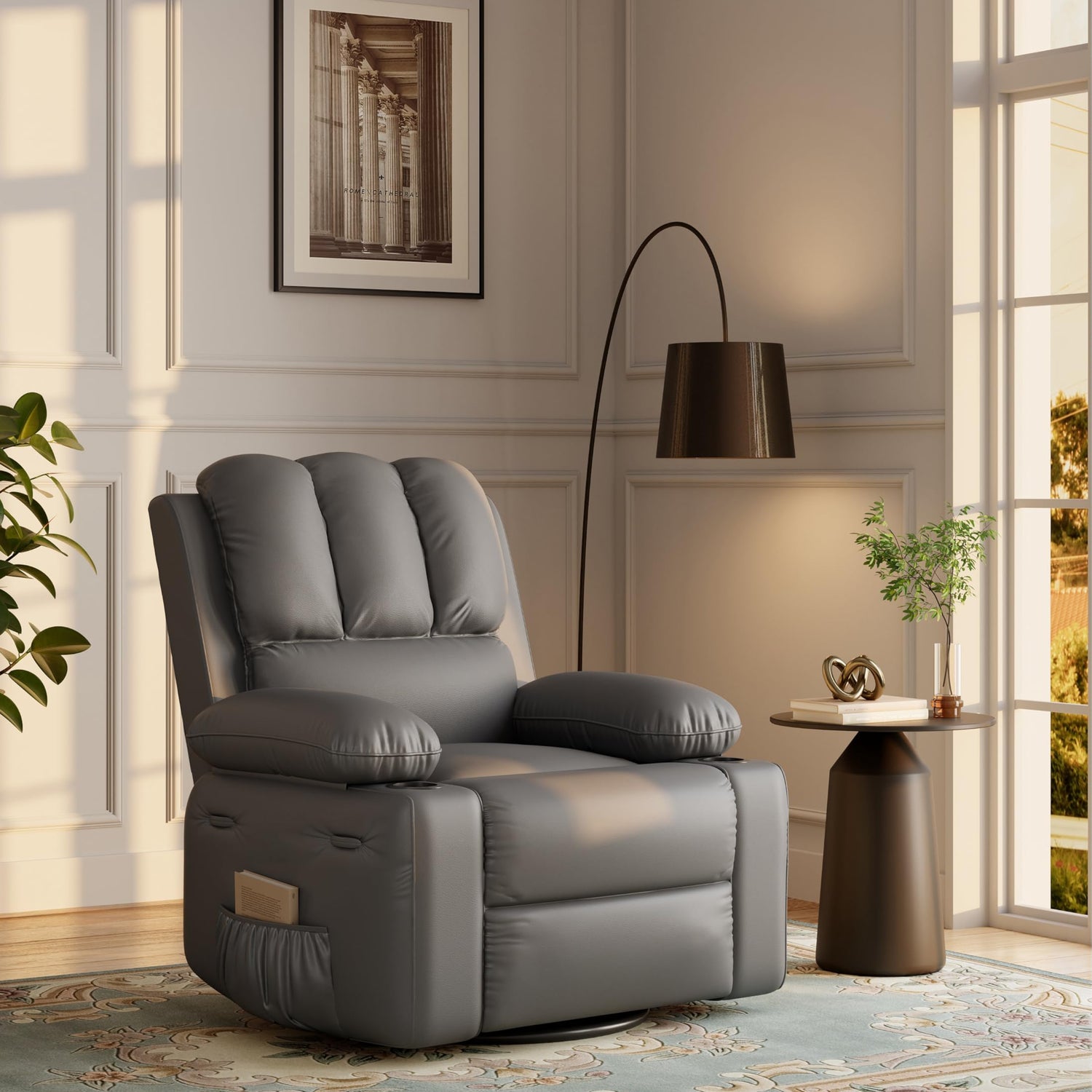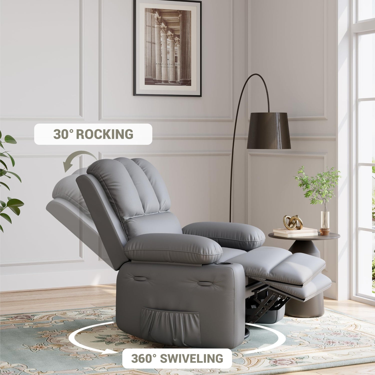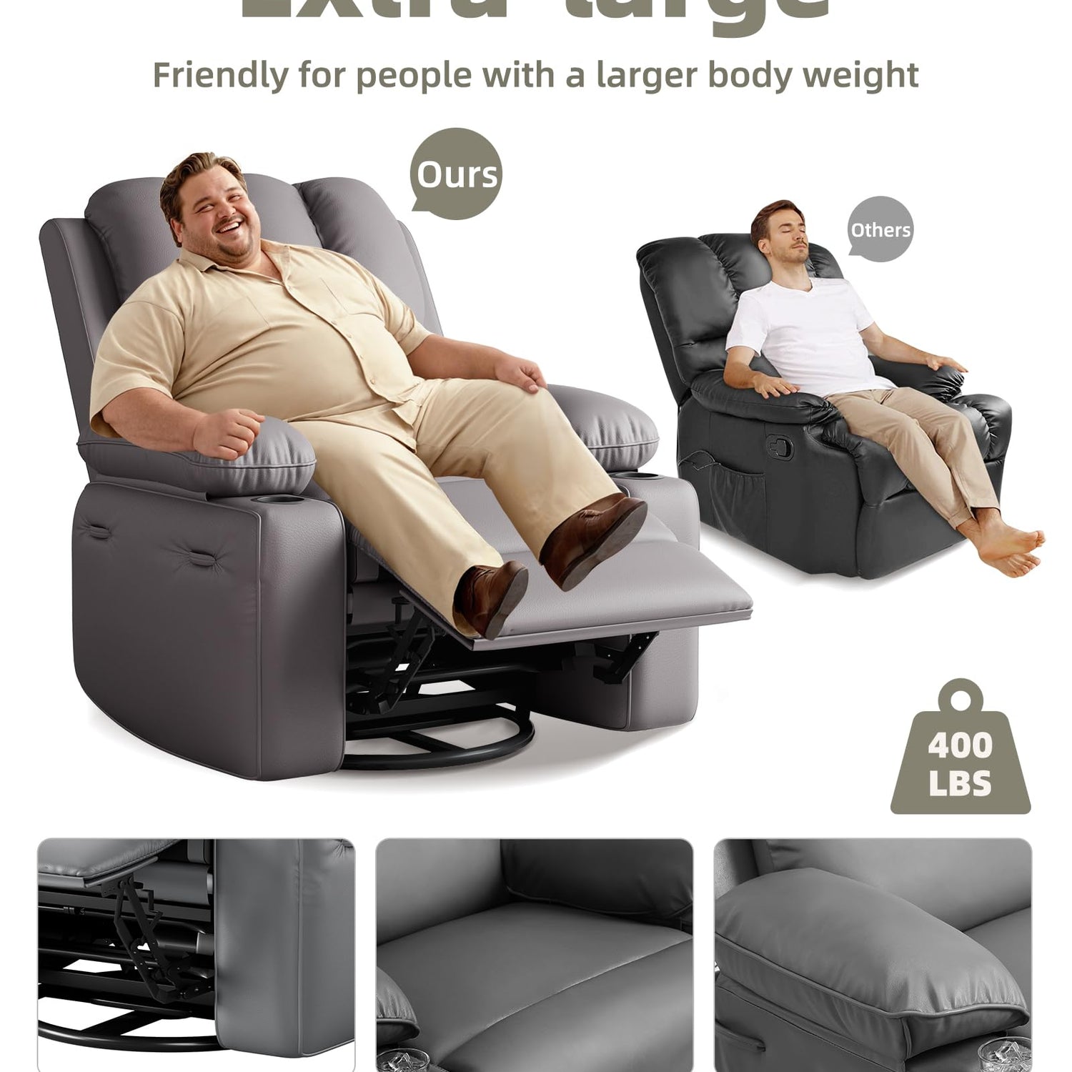GarveeHome Oversized Recliner Chairs with 1.5X Sponge Filling, 360° Swivel Lazy Recliner Chair for Adults, Manual Rocking Chair with Cup Holder for Living Rooms, Bedrooms, and Nurseries