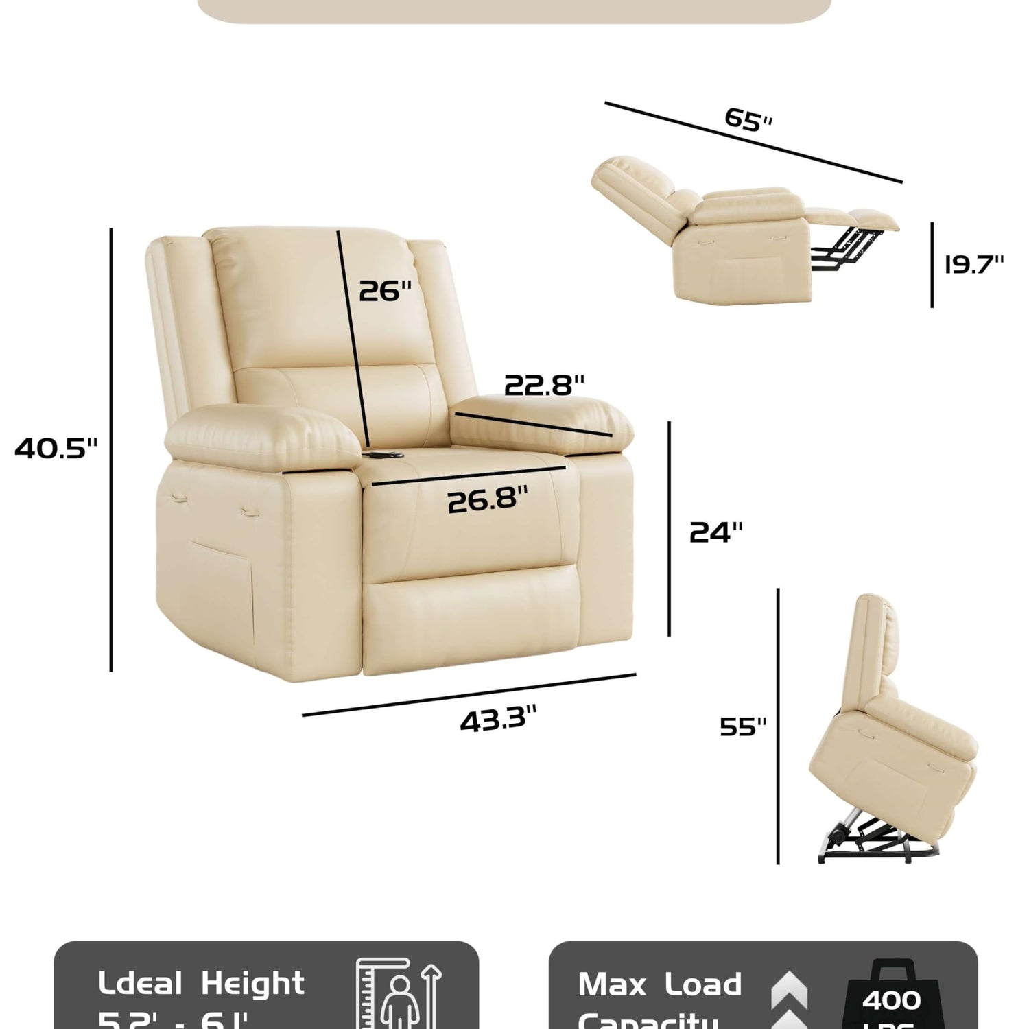 - 【Product Dimensions】The Oversized Power Lift Recliner Chair measures 43.3 x 37.4 x 40.6 in, seat width: 26.8 in, weight capacity:400 LBS, making it a sturdy and spacious choice for seniors and those with limited mobility