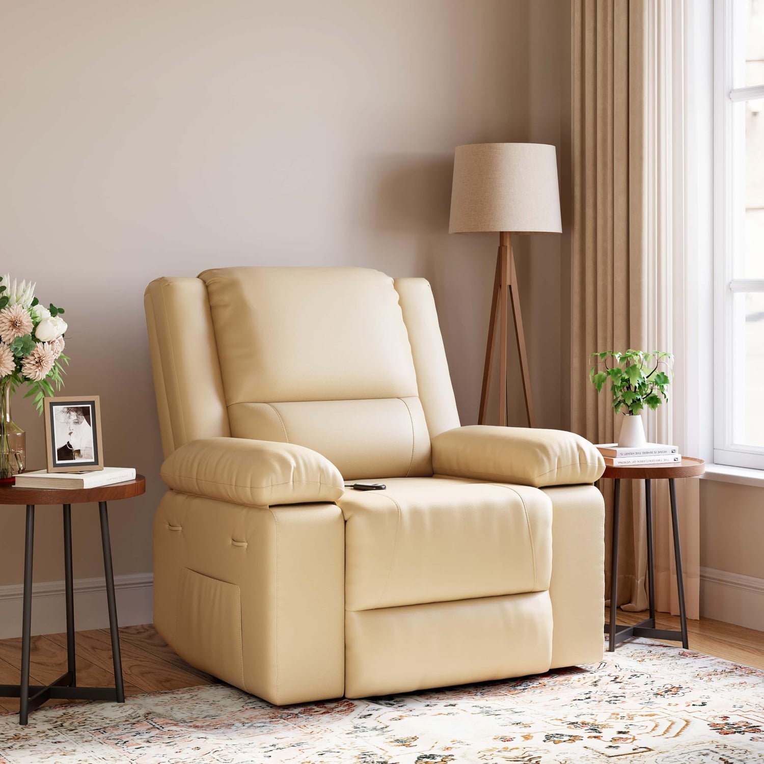 - 【Premium Quality Materials】Crafted from high-quality faux PU leather, this recliner is both wear-resistant and waterproof, ensuring long-lasting durability. The robust metal frame provides a solid foundation, guaranteeing safety and stability for daily use