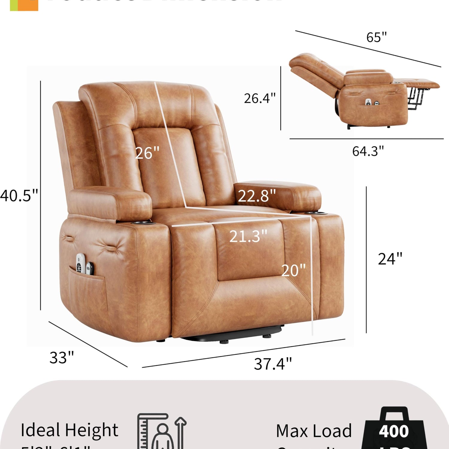 - 【Product Dimensions】The Power Lift Recliner Chair measures 38.6 x 37.4 x 40.6 inches, seat width: 21.3 inches, weight capacity:400 lbs, making it a sturdy and spacious choice for seniors and those with limited mobility