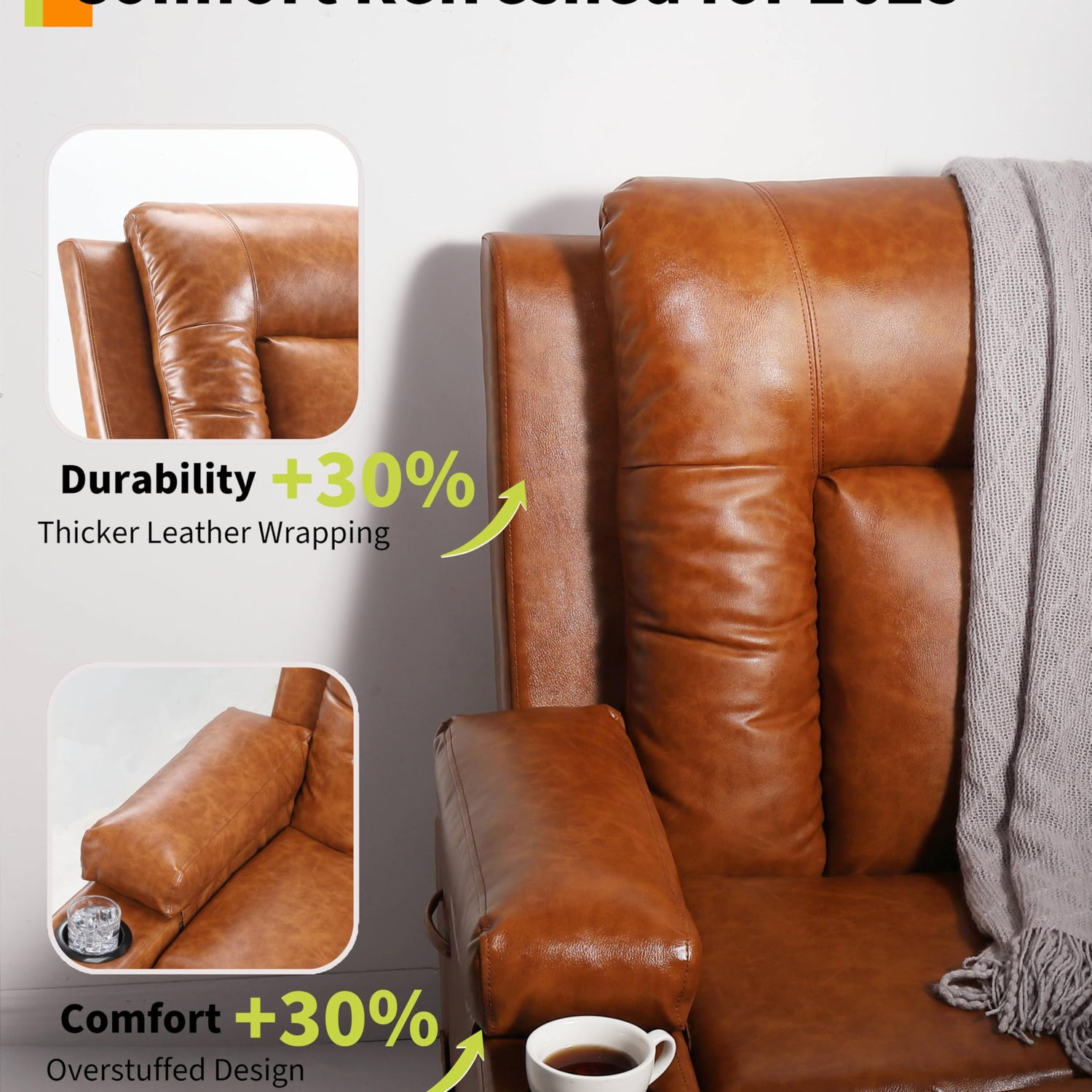 - 【Premium Quality Materials】Crafted from high-quality faux PU leather, this recliner is both wear-resistant and waterproof, ensuring long-lasting durability. The robust metal frame provides a sturdy foundation, guaranteeing safety and stability for daily use