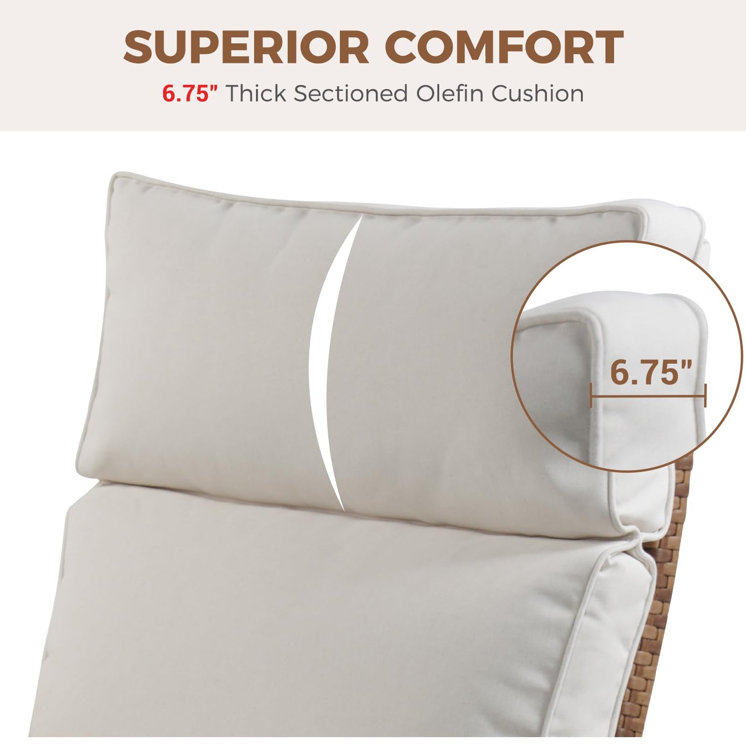 - DURABLE MATERIALS: Our adjustable chair features flat double-strand all-weather wicker that is meticulously handwoven over a rust-resistant powder-coated and e-coating steel frame built to withstand the outdoor elements. Stain, fade, and wear-resistant olefin fabric cushions are removable for easy cleaning